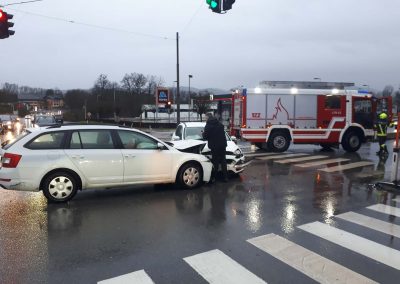Am 02.02. wurden wir um 16.37 Uhr zu Aufräumarbeiten nach einem Verkehrsunfall auf der Himmelreichkreuzung alarmiert.