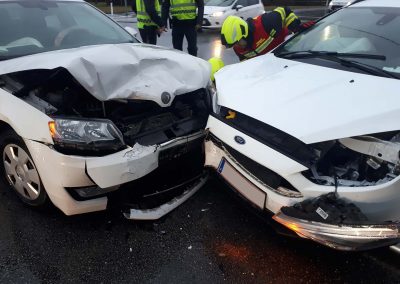 Wir haben die Aufräumarbeiten an der Unfallstelle durchgeführt und die Fahrzeuge aus dem Kreuzungsbereich gebracht. Die Straße wurde dann noch von herumliegenden Teilen gesäubert und ausgeflossene Betriebsmittel wurden gebunden.