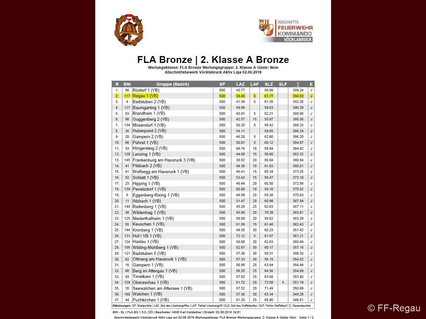 Unsere Bewerbsgruppe war dabei sehr erfolgreich und belegte in der Wertungsklasse FLA Bronze, Wertungsgruppe 2. Klasse A den hervorragenden 2. Platz!