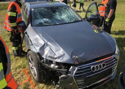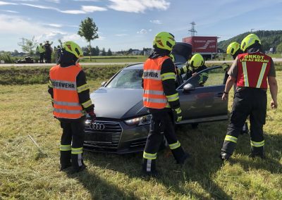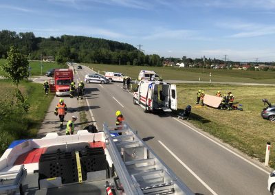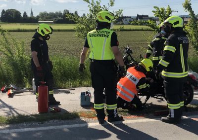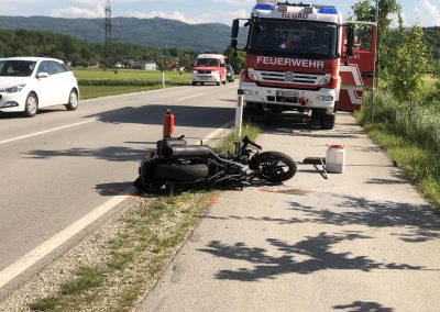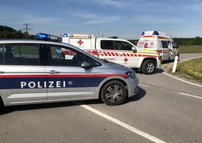 Bei unserem Eintreffen wurde er bereits notärztlich versorgt und anschließend mit der Rettung, ebenso wie der leicht verletzte PKW-Lenker, ins Krankenhaus gebracht.