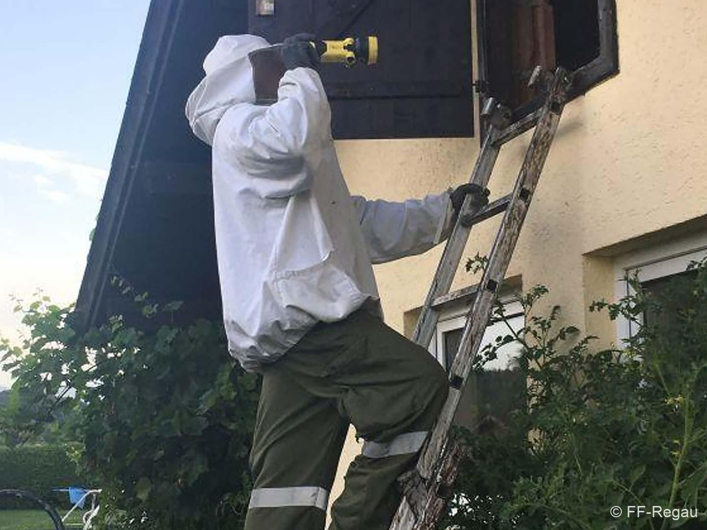 Regaus Feuerwehrkommandant Ernst Staudinger appelliert an die Bürgerinnen und Bürger: „Bitte melden Sie sich schon, wenn Sie Nestbauaktivitäten oder verstärkte Flugbewegungen der Tiere wahrnehmen – nicht erst, wenn das Nest gigantische Ausmaße angenommen hat. Und zweitens: Bitte haben Sie Verständnis dafür, dass wir alle ehrenamtlich im Einsatz sind und daher nicht auf die Sekunde zur Stelle sein können!“