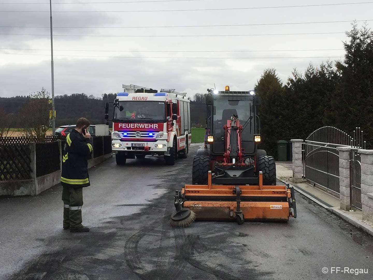 Defekter Hydraulikschlauch sorgte für Verschmutzung! Im Gelände einer Regauer Firma sorgte heute ein defekter...