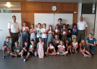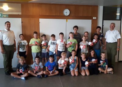 Also „Belohnung“ bzw. als Nachweis für das tatkräftige Mitwirken gab es eben dann noch die Brandschutzausweise, die unser Kommandant und Ehrenkommandant den Schülerinnen und Schülern überreichten.