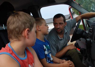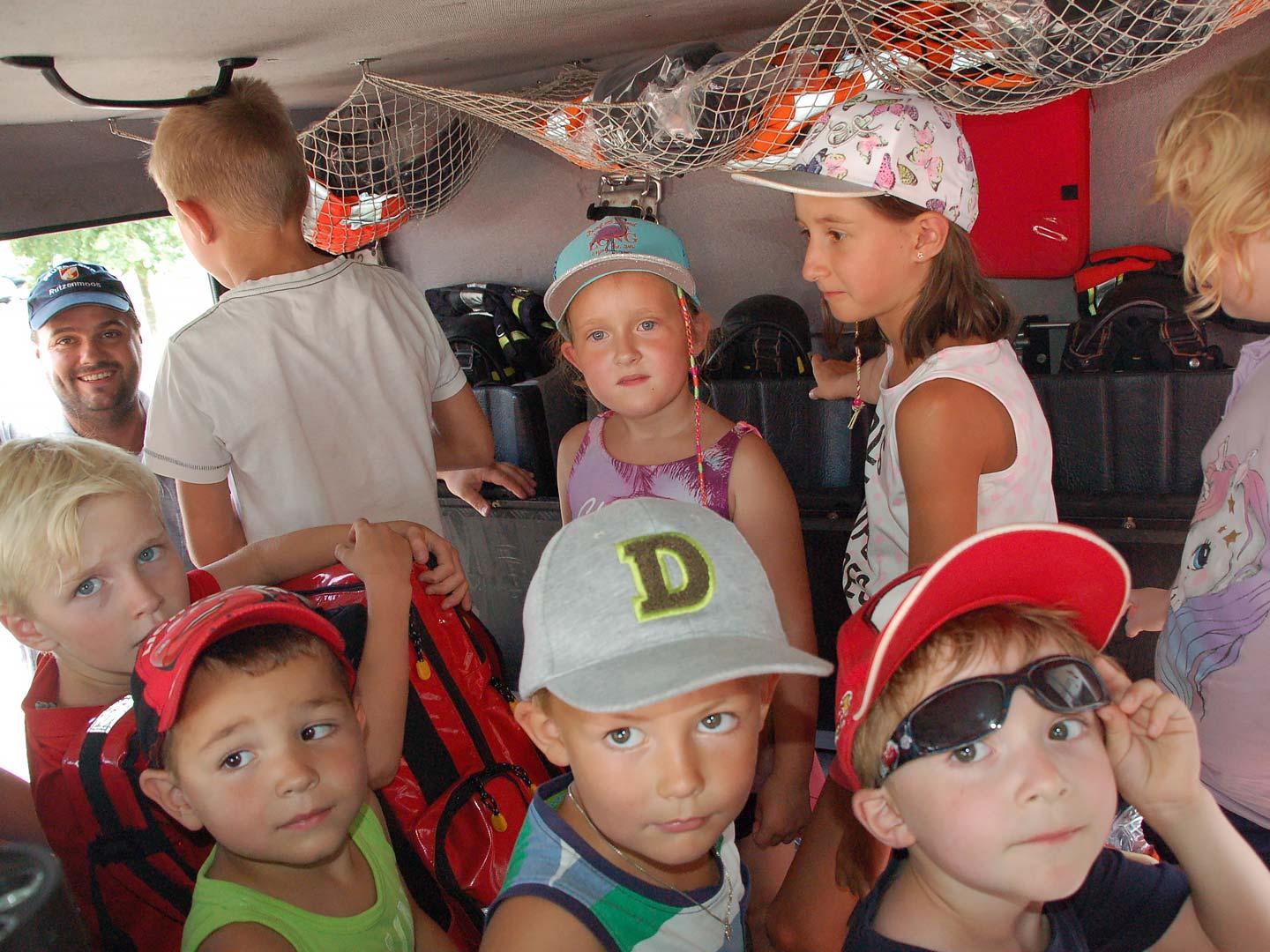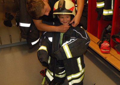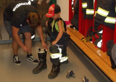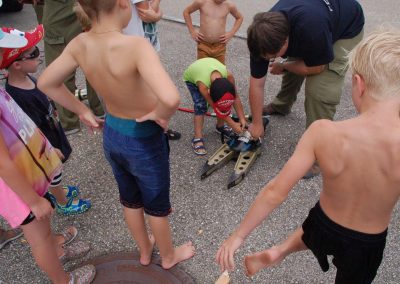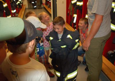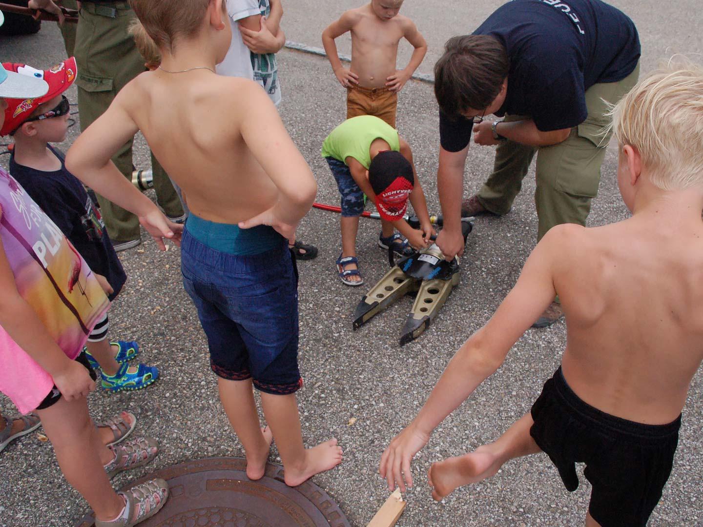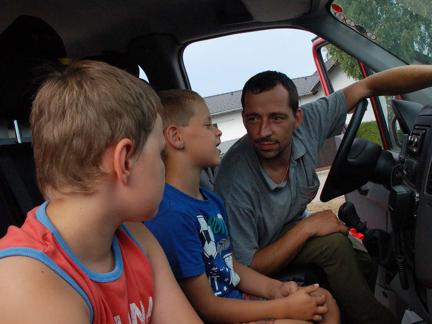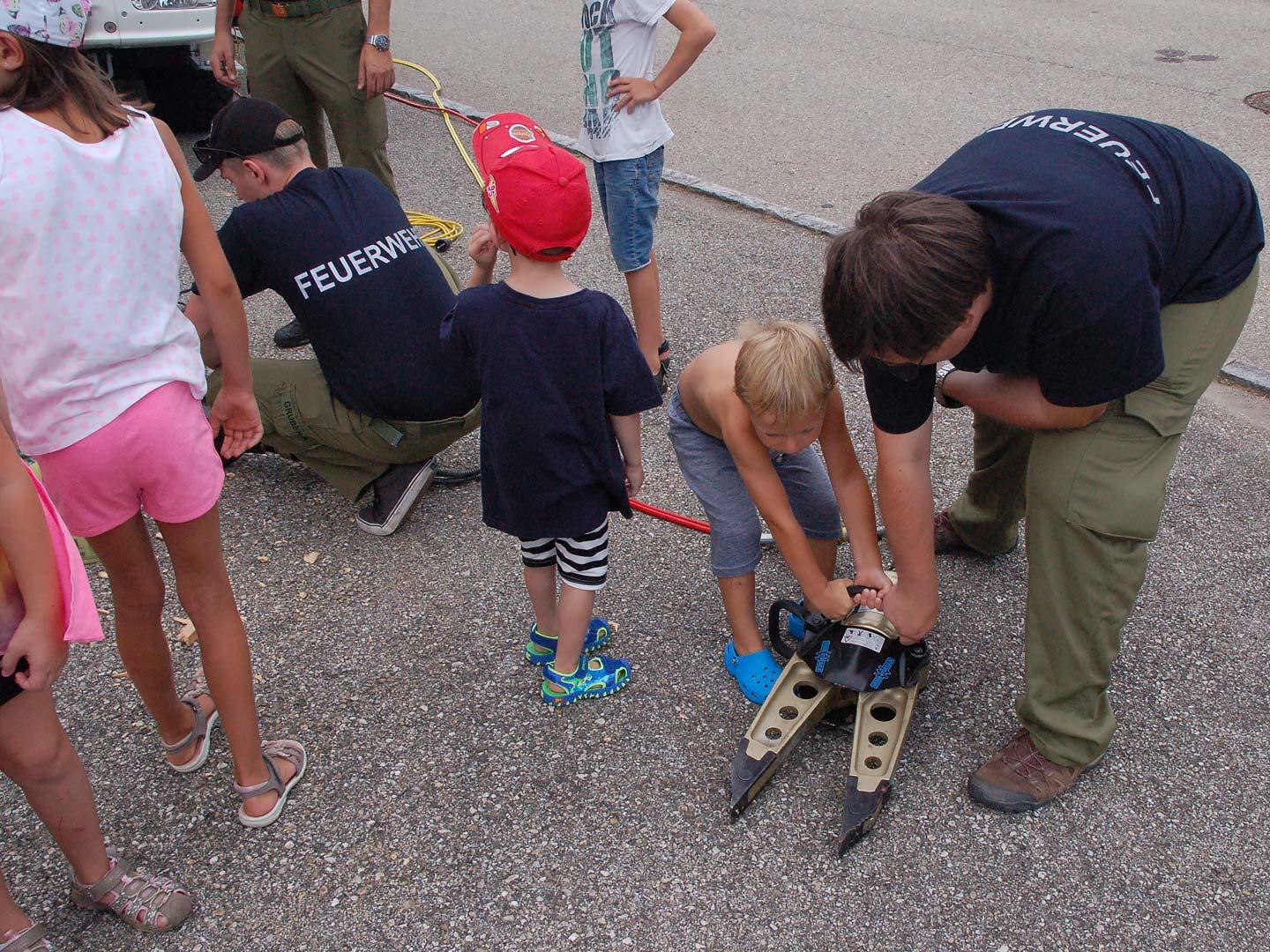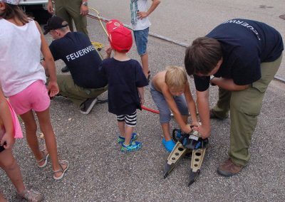Nach einer theoretischen Unterweisung für die Kinder gings an die Geräte und Fahrzeuge. Mit sehr viel Spaß und Eifer waren die Kleinen bei der Sache. Alles wurde probiert und genau inspiziert.