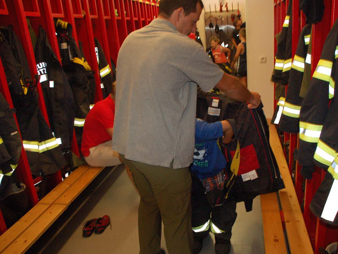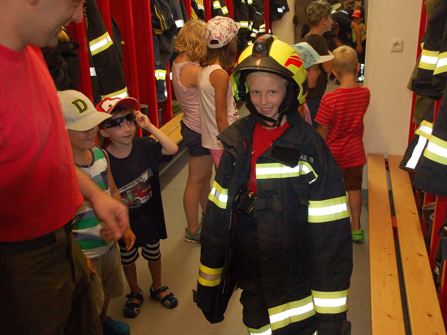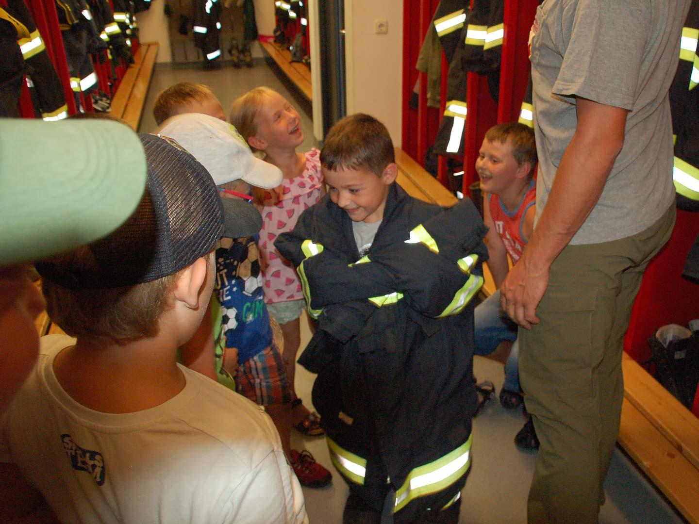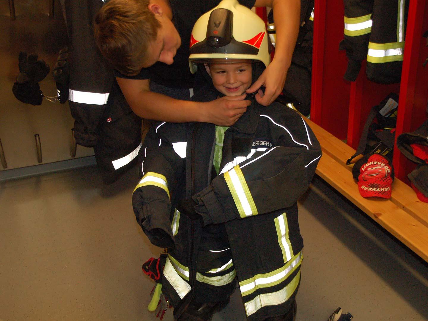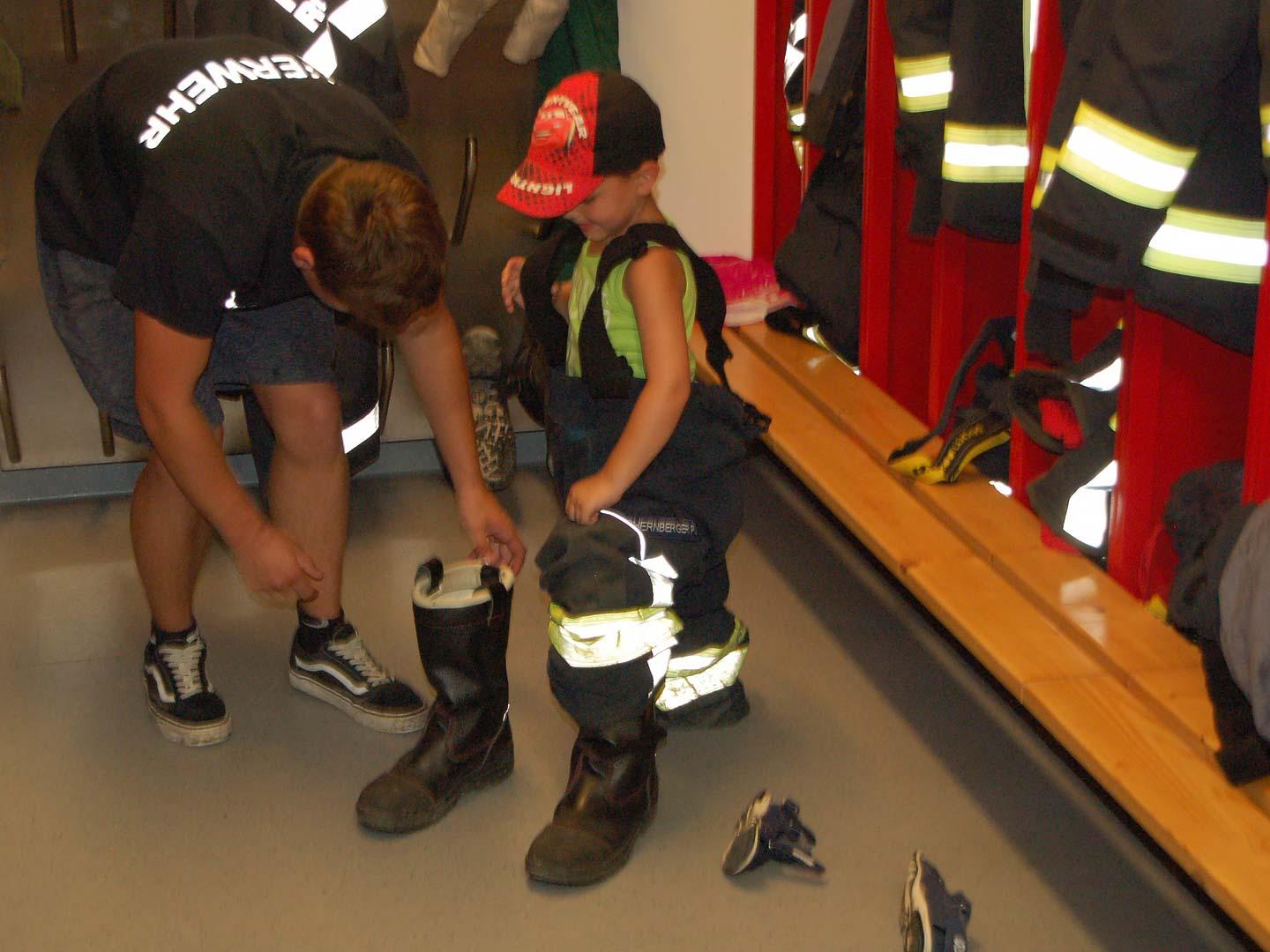 Nach einer theoretischen Unterweisung für die Kinder gings an die Geräte und Fahrzeuge. Mit sehr viel Spaß und Eifer waren die Kleinen bei der Sache. Alles wurde probiert und genau inspiziert.