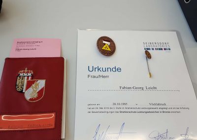 Nach der Auswertung durch die Prüfungskomission erhielt unser Kamerad das Abzeichen. Die Kameraden gratulieren zum bestanden Leistungsbewerb.