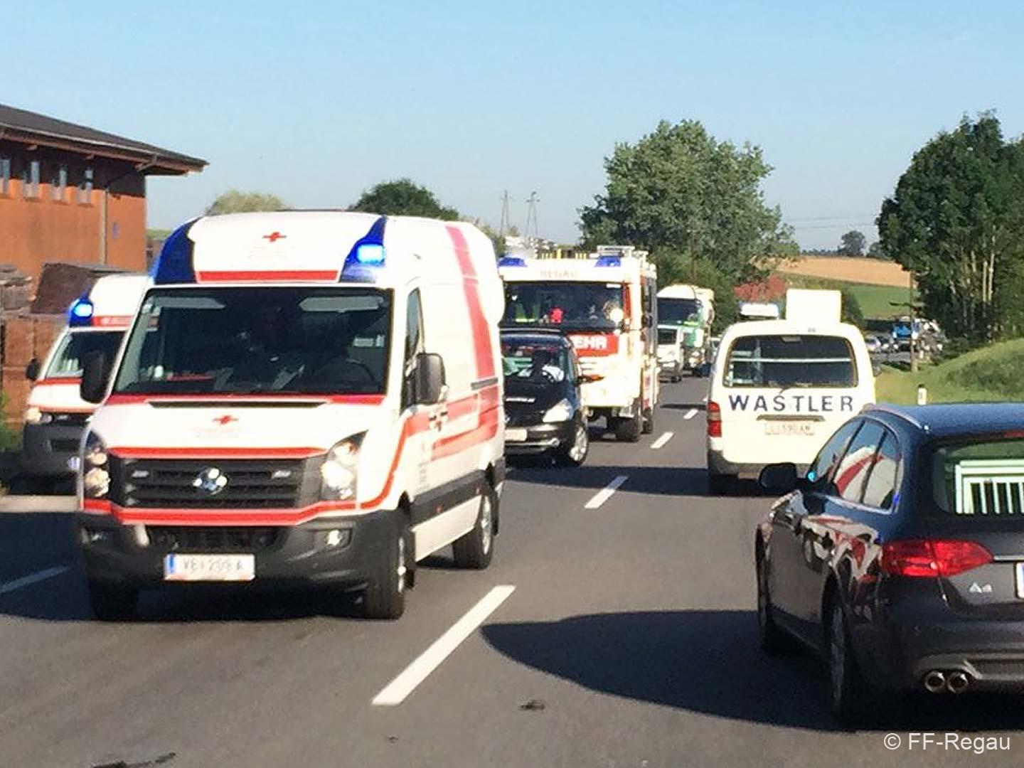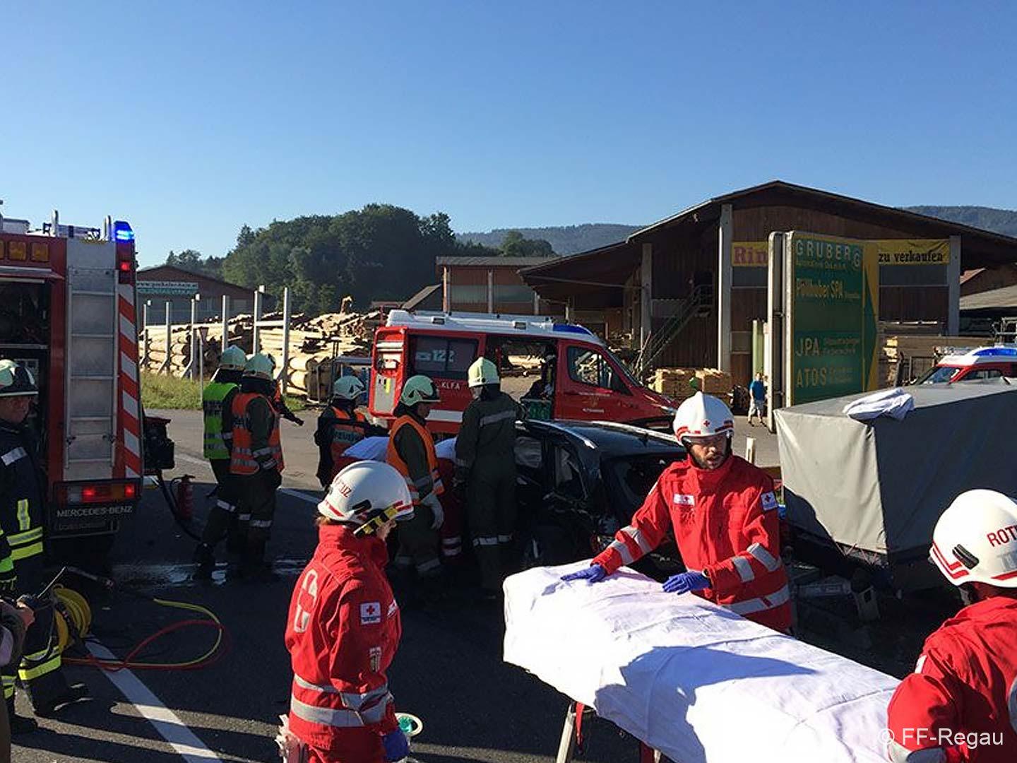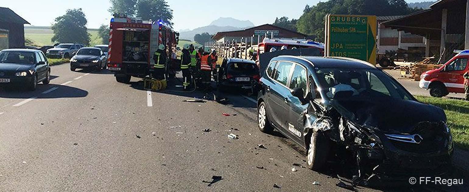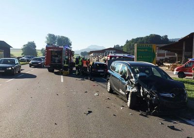 Verkehrsunfall auf der Salzkammergutbundesstraße. Heute um 8 Uhr wurden wir und die FF Rutzenmoos zu einem Verkehrsunfall mit eingeklemmter Person auf der B 145, Höhe Prehofer alarmiert.