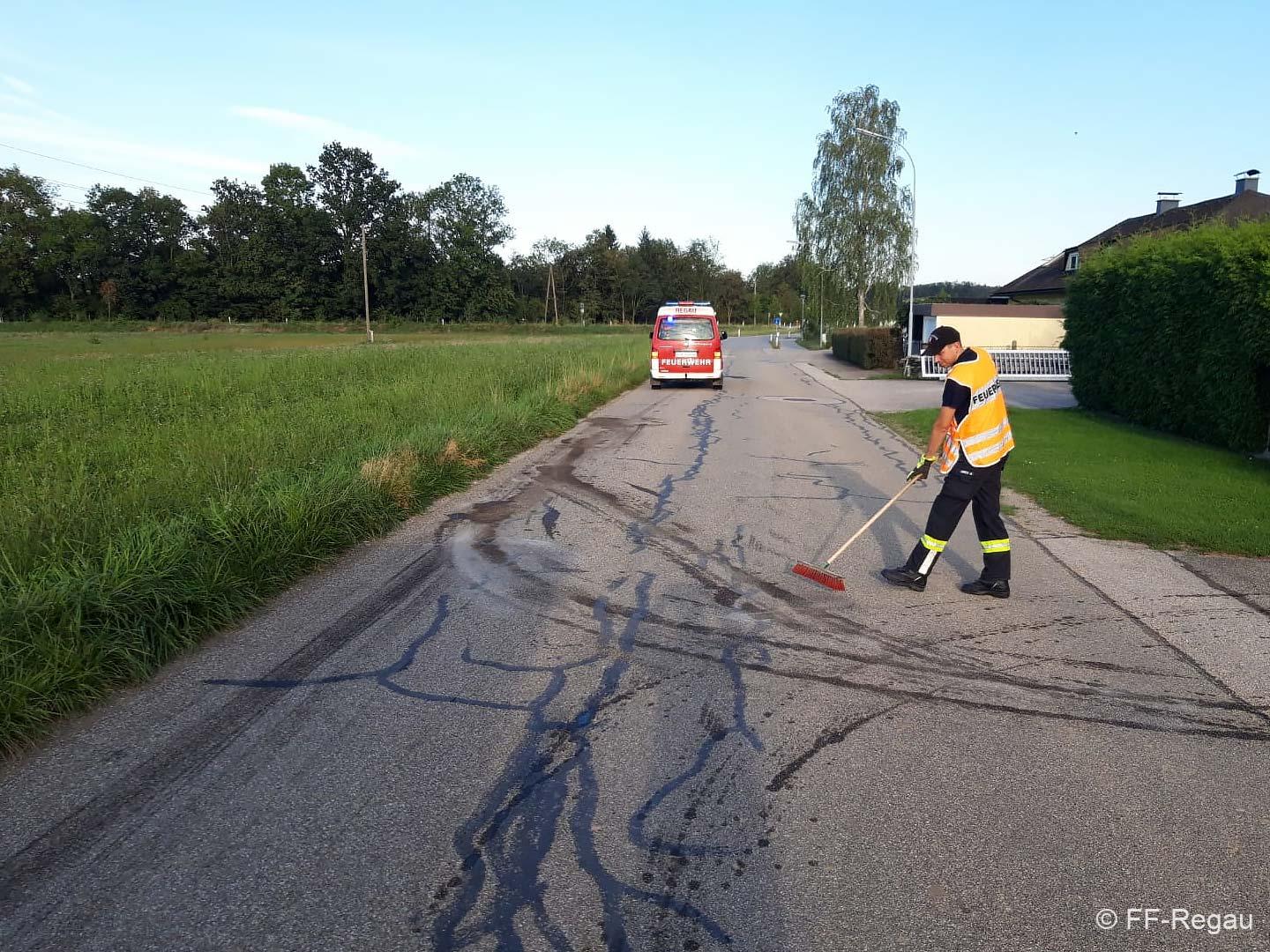 Defekter Hydraulikschlauch sorgte für Verschmutzung! Im Gelände einer Regauer Firma sorgte heute ein defekter...