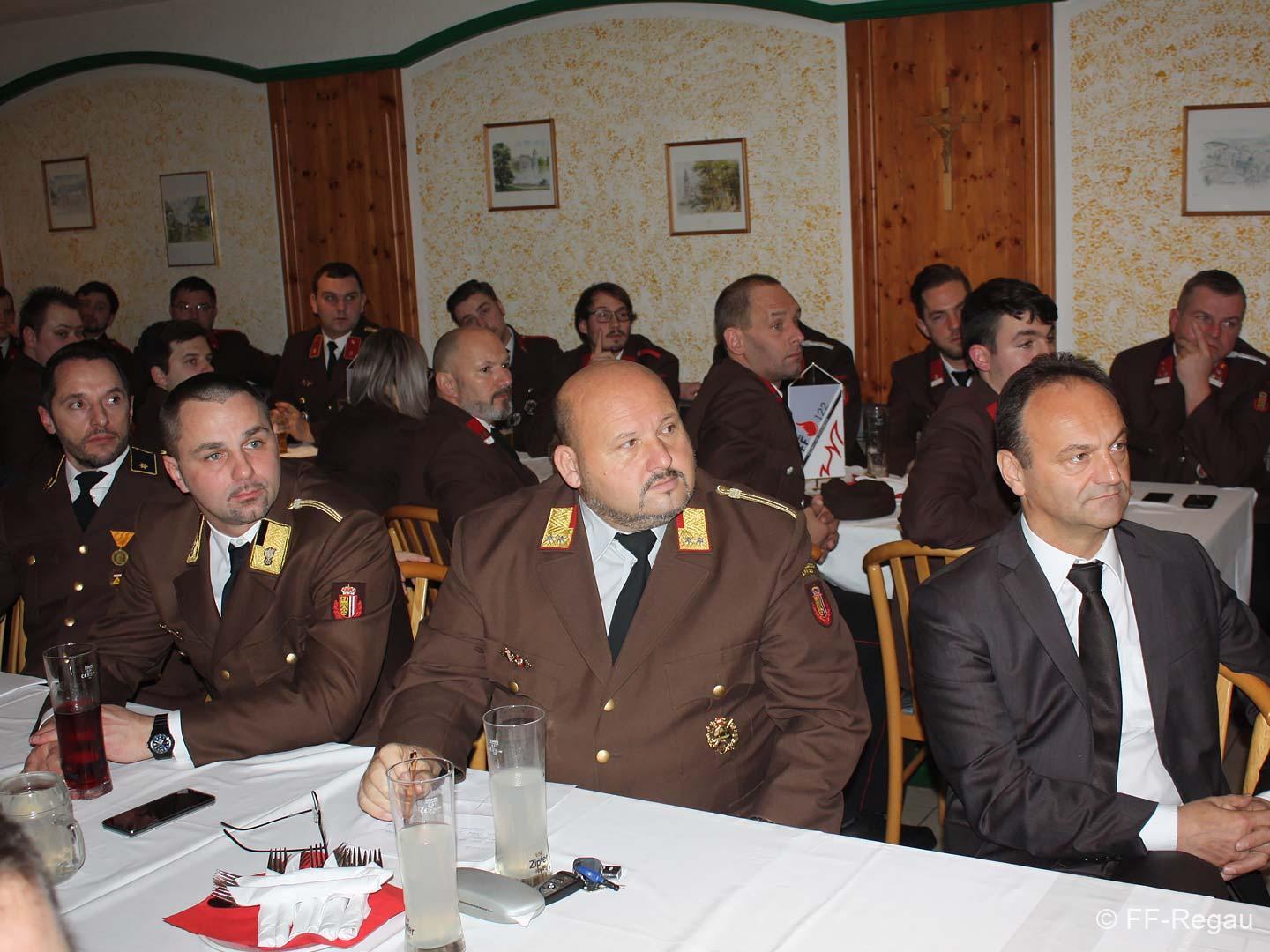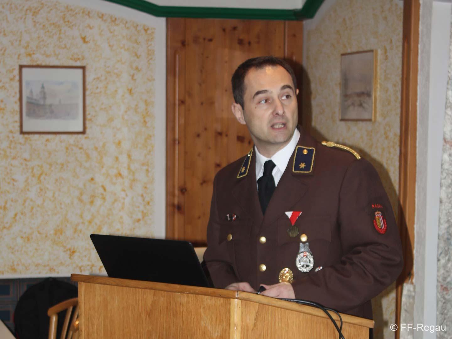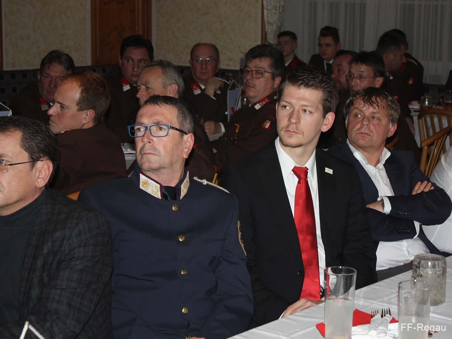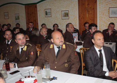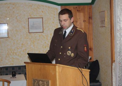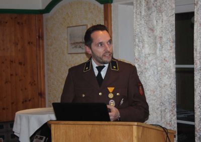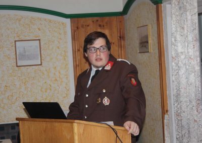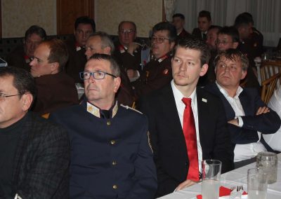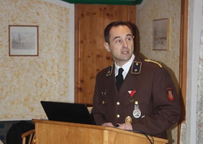 HBI Christoph Staudinger begrüßte bei „seiner“ 1. Vollversammlung als Kommandant am 5. Jänner 2019 im Gasthaus Haslinger eine große Anzahl von Ehrengästen. Dazu zählten Bürgermeister Peter Harringer, die Vizebürgermeister Karl Haas und Arthur Kroismayr, die Gemeindevorstände Jürgen Gaigg und Gerald Spalt, Gemeindeamtsleiterin Dr. Hedda Seyrl, Chefinspektor Günther Böck (von der Polizeiinspektion Vöcklabruck, Georg Neumayr (vom Roten Kreuz), Abschnittskommandant Alois Lasinger und der Kommandant der FF Rutzenmoos HBI Florian Riedl.