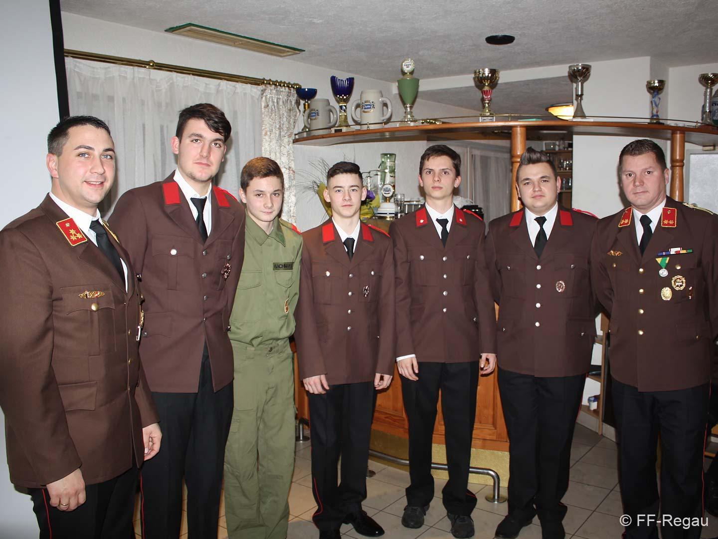 Neu aufgenommen wurden Philipp Keller, Daniel Schneider und Simon Weidinger, angelobt und zum Feuerwehrmann befördert Micheal Gebhartl und Peter Steiner.