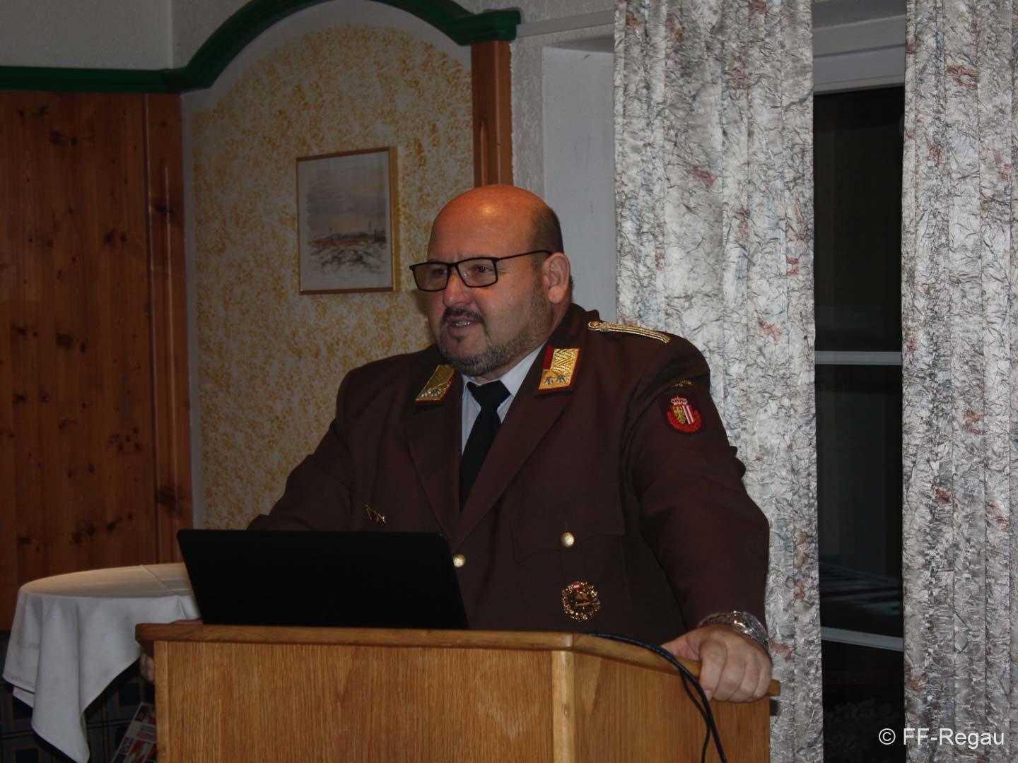 HBI Staudinger legte dann auch gleich eine Rekordbilanz vor: 17.583 Stunden standen seine Kameraden ehrenamtlich im Dienst der Öffentlichkeit. Ein noch nie dagewesener Wert. Bei einer 40 Stunden Arbeitswoche wären dies umgerechnet auf die 120 Mitglieder unserer Wehr (Aktive, Reservisten und Jugendliche) 3,67 Wochen Feuerwehrdienst!