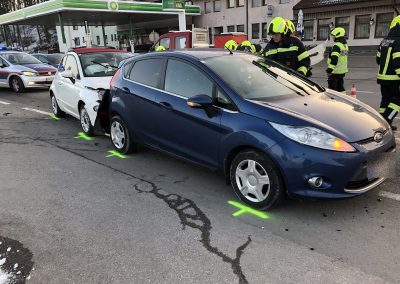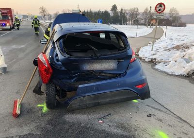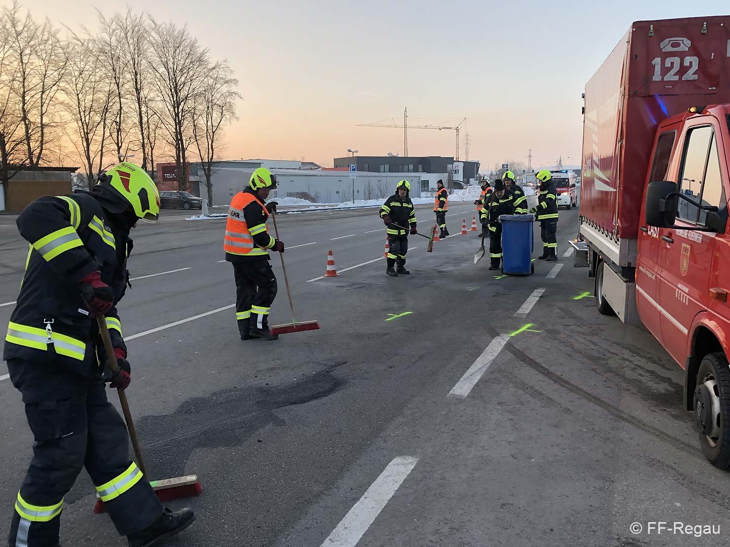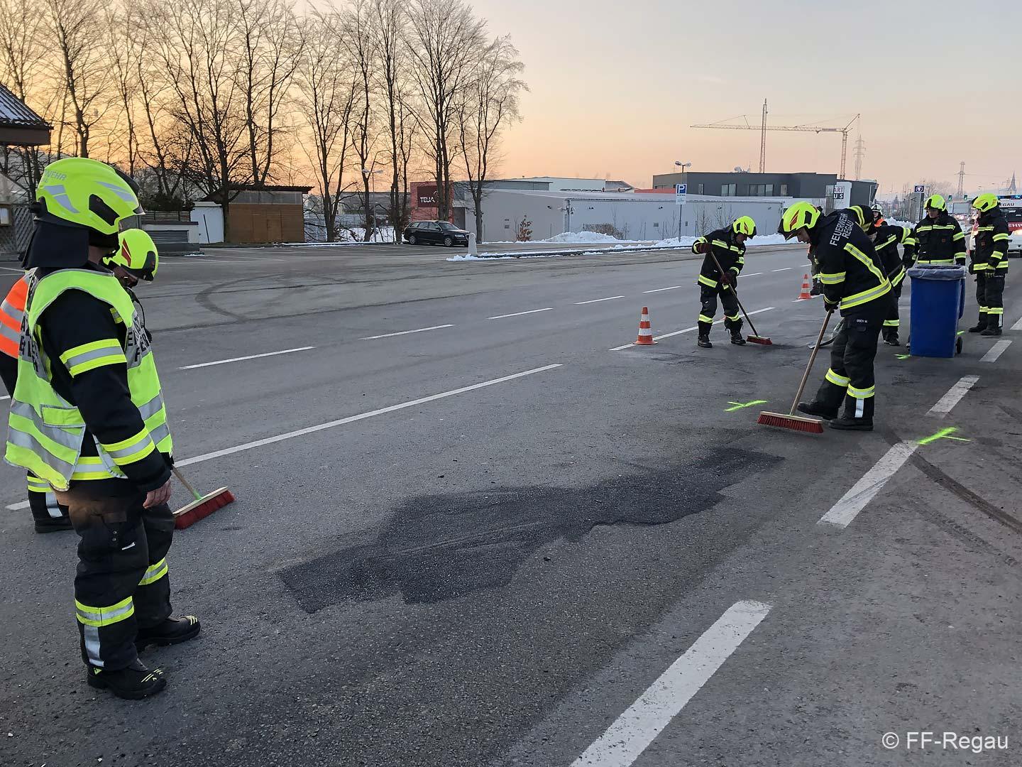 Auf der B 145 ist es im Bereich der BP Tankstelle zu einem Auffahrunfall gekommen. Die Fahrbahn wurde von uns gereinigt und herumliegende Teile wurden weggeräumt. Die Unfallfahrzeuge wurden dann auf einem nahegelegenen Parkplatz geschoben und ausgeflossene Flüssigkeiten mittels Bindemittel gebunden.