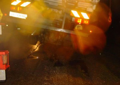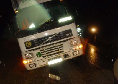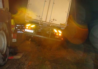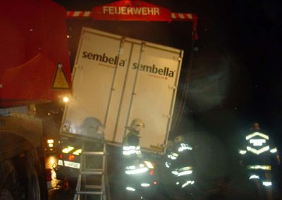 Ein LKW kam beim Ausweichen rechts von der Straße ab und rutschte in den Straßengraben. Zur Bergung des LKW’s wurde der Kranstützpunkt der FF Vöcklabruck nachalarmiert. Mit dem Kran wurde der hintere Teil des LKW wieder auf die Farbahn gehoben und mittels Schleppstange konnte dann das gesamte Fahrzeug zurück auf die Straße gezogen werden.