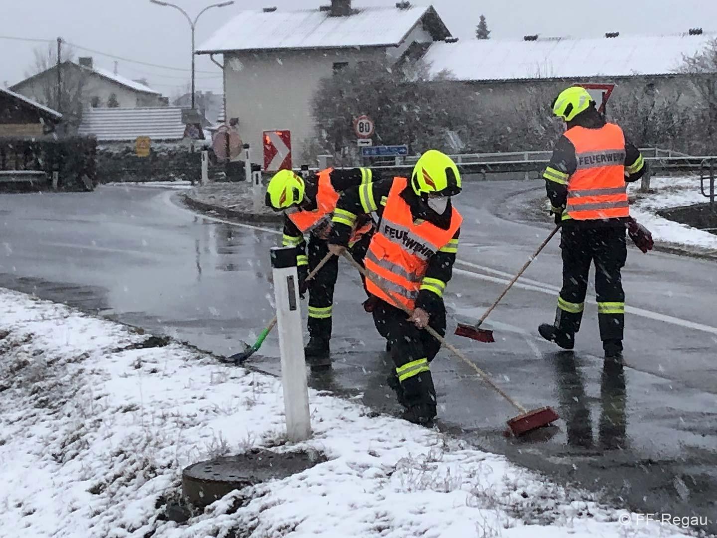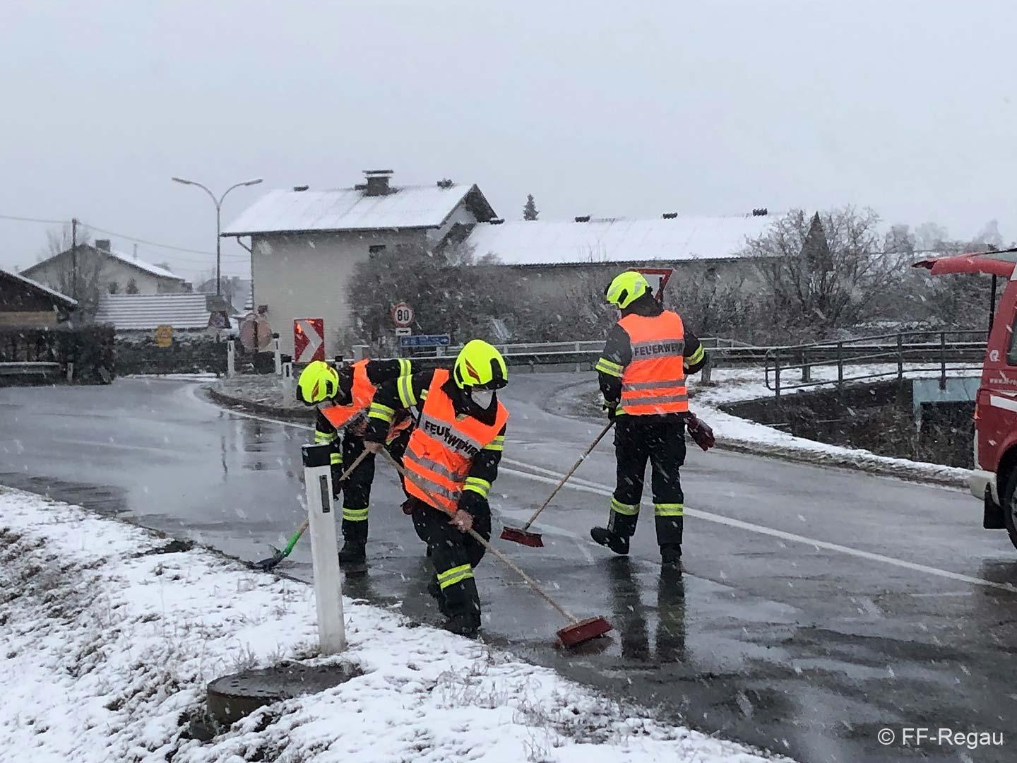 Im Kreuzungsbereich der Oberregauer Straße mit der B 145 zog sich eine Dieselspur über etliche Meter und betraf beide Fahrbahnhälften. Mittels Bindemittel wurde die Dieselspur gebunden und danach entfernt.