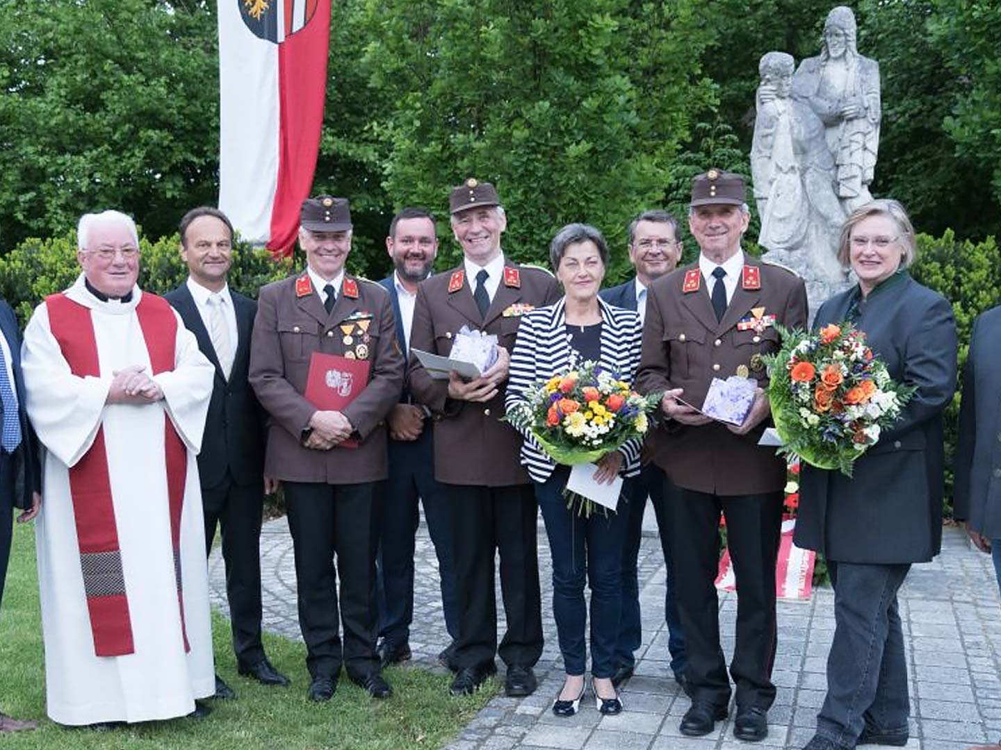 Für die Gattinnen der beiden Kommandanten gab es als Dankeschön einen Blumenstrauß.