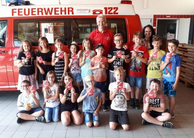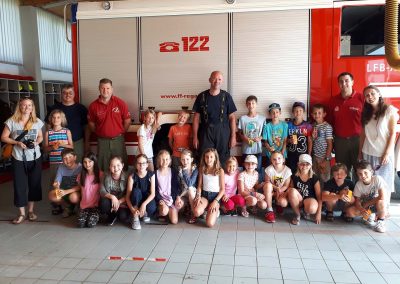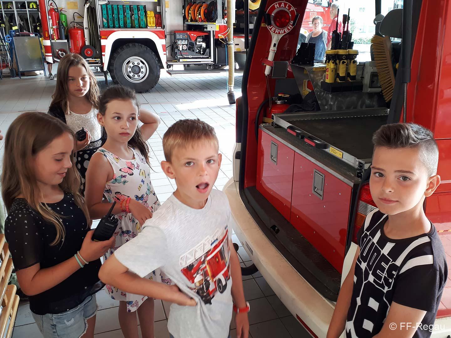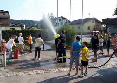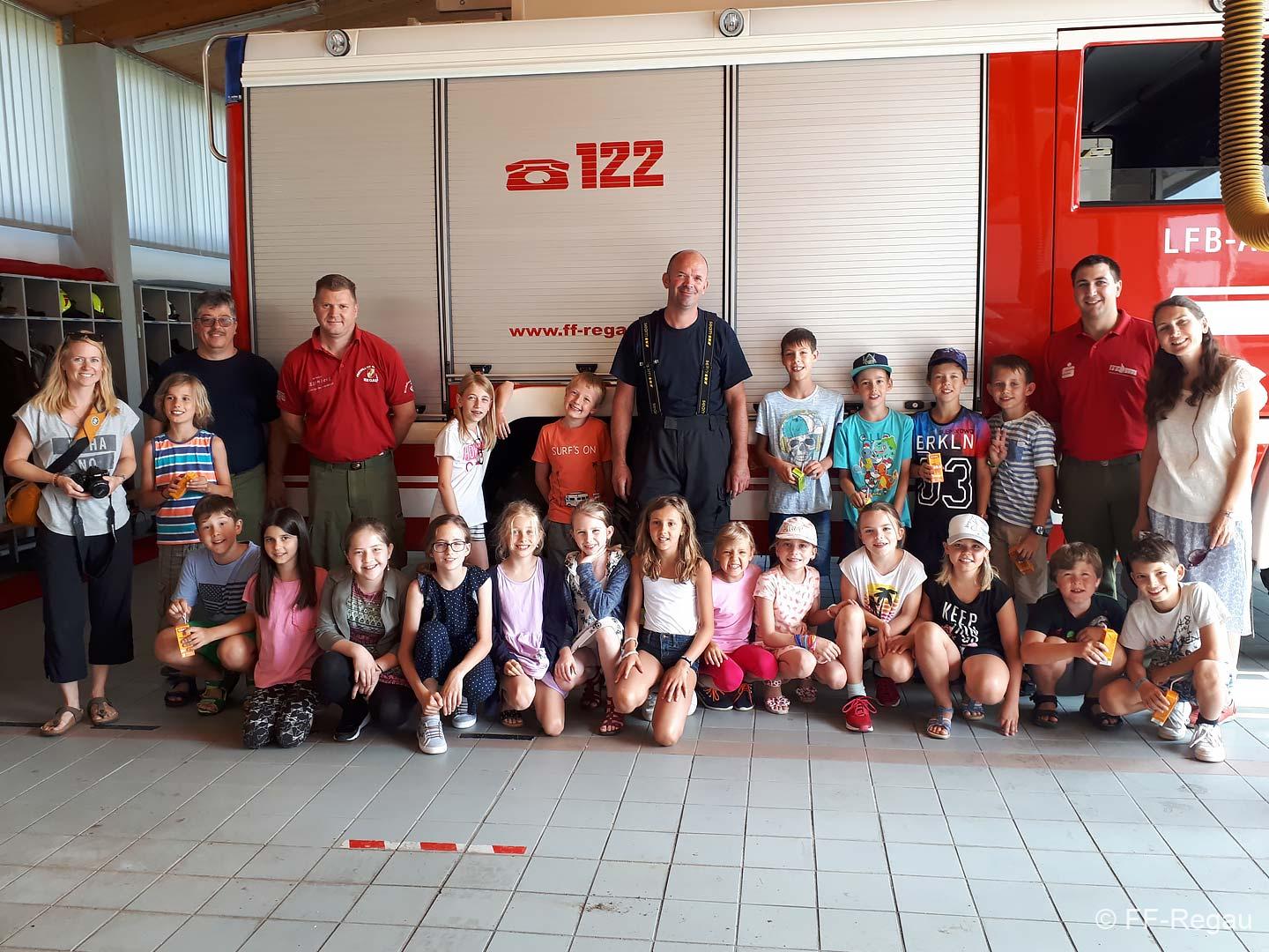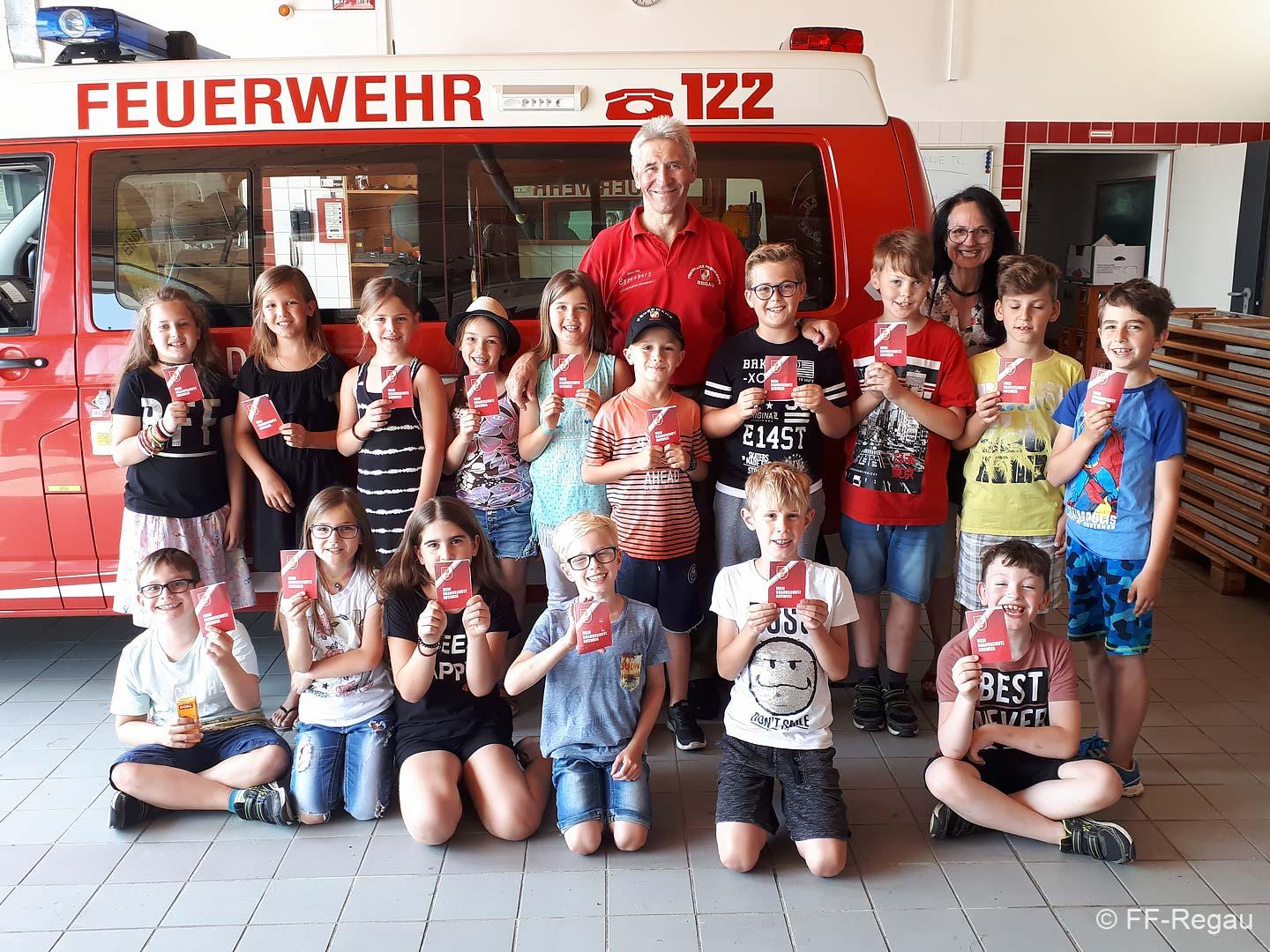 Die 3, Klassen der Volksschule Regau haben uns am 5. Juni besucht. Kommandant Christoph Staudinger freute sich, die Kinder im Feuerwehrhaus begrüßen zu dürfen. Alles rund um das Feuerwehrwesen begeisterte die Kinder. Zu Beginn gab’s ein Video über die richtige Alarmierung und dann wurden die Gerätschaften gezeigt. Groß war dann der Eifer natürlich als die Kinder selber Hand anlegten und das Strahlrohr bedienen durften. Dazu musste ein „echter“ Feuerwehrhelm getragen werden, eh klar. Natürlich war die abschließende Fahrt mit dem Feuerwehrauto wieder der absolute Höhepunkt..