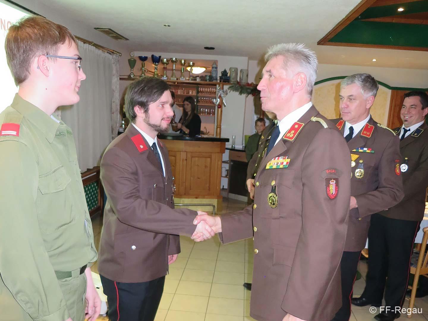 Neu aufgenommen wurden Philipp Keller, Daniel Schneider und Simon Weidinger, angelobt und zum Feuerwehrmann befördert Micheal Gebhartl und Peter Steiner.