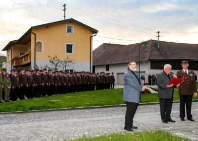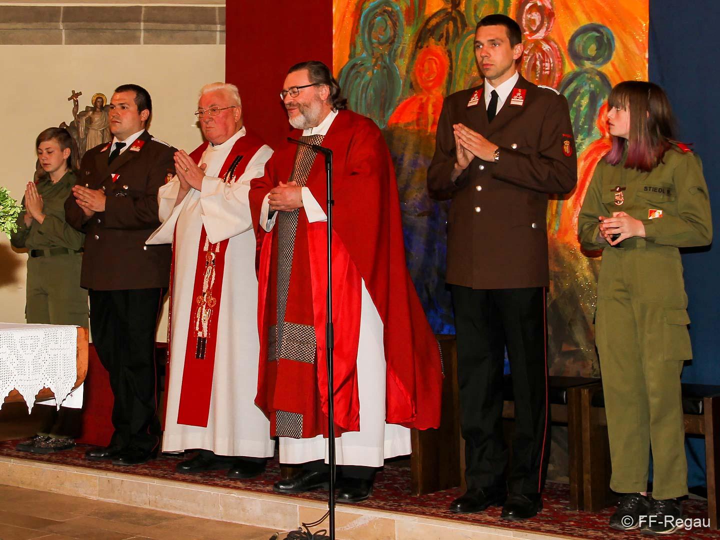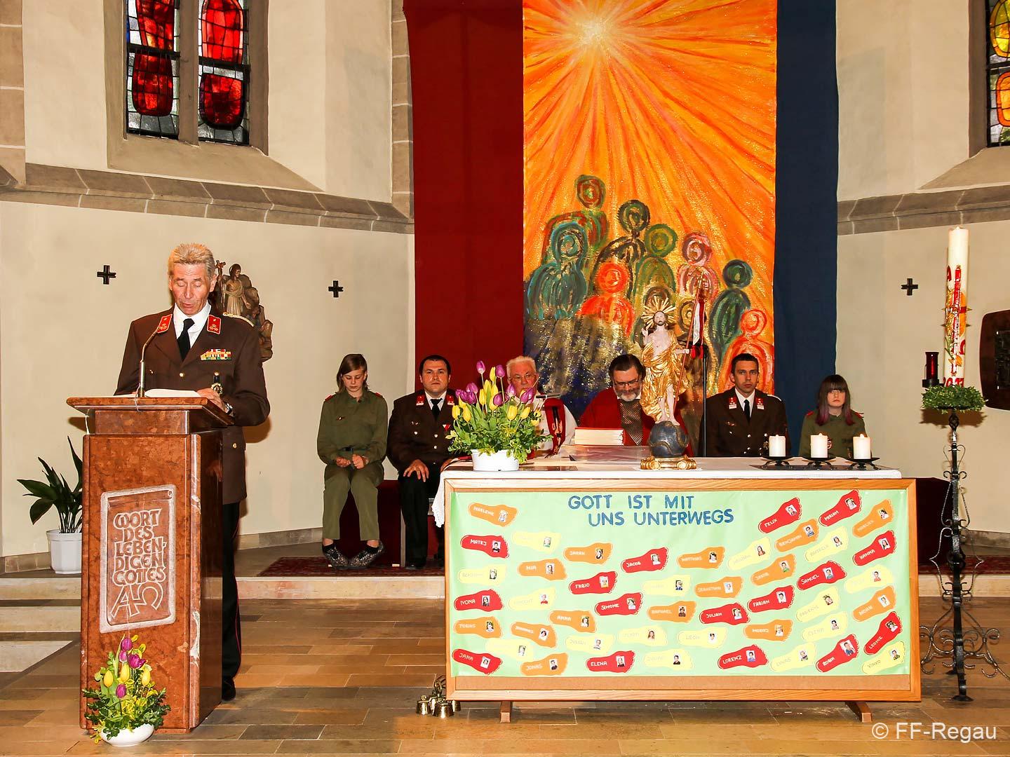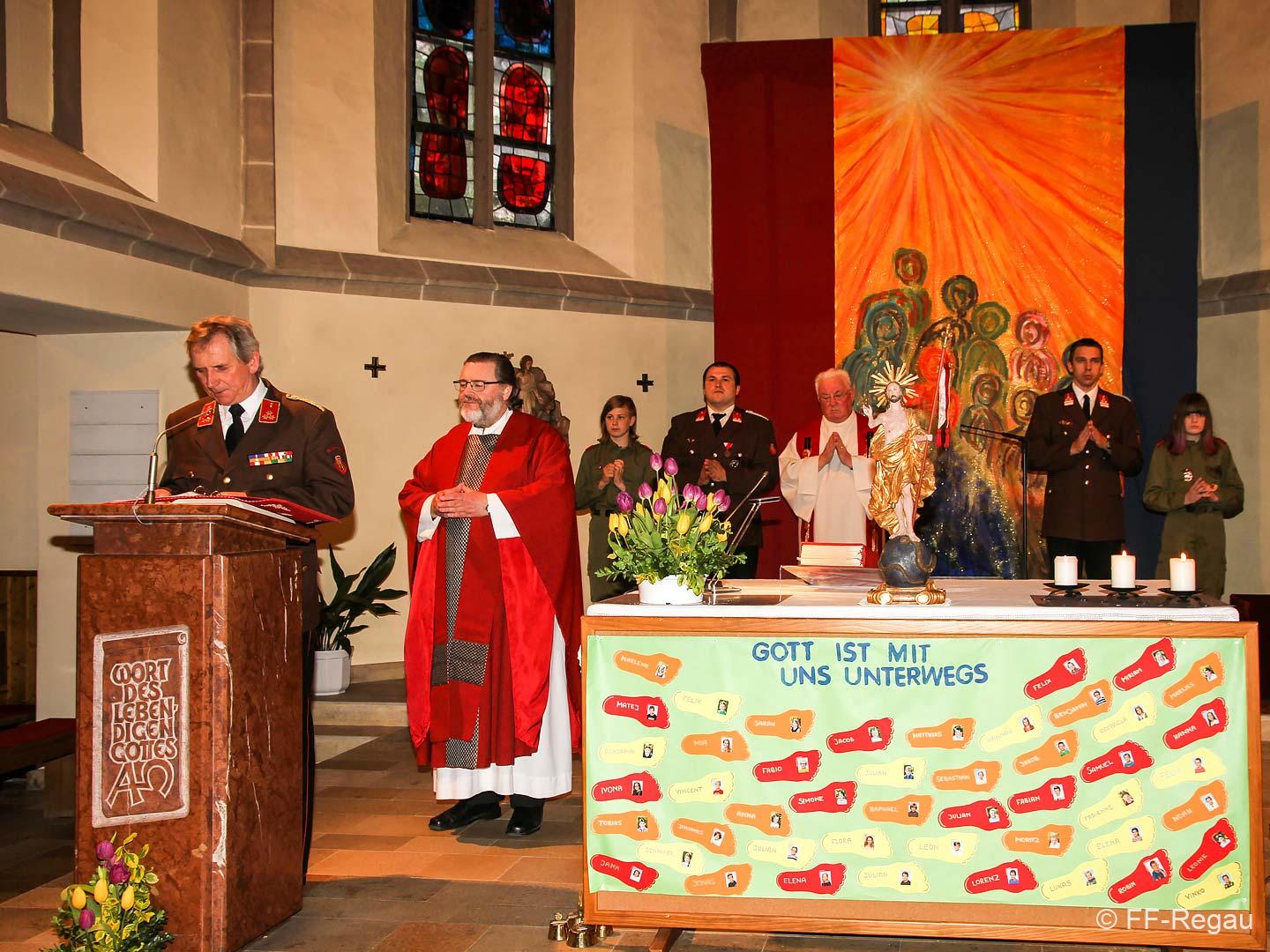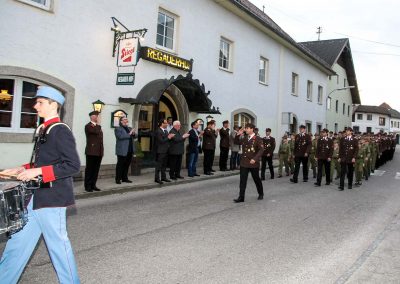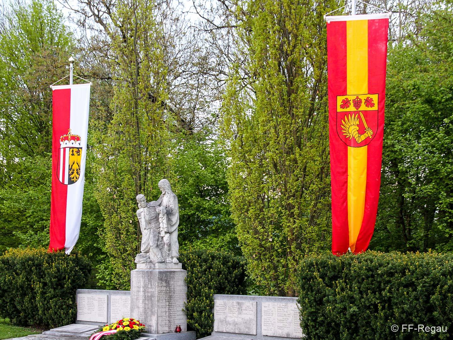 Dort zelebrierten Vöcklabrucks Stadtpfarrer Helmut Kritzinger und der Regauer Pfarrer Franz Hörtenhuber die Hl. Messe. Danach fand man sich zum Totengedenken beim Kriegerdenkmal am Ortsplatz. Anschließend erfolgte die eindrucksvolle Defilierung vor den Ehrengästen – neben Ortschef Peter Harringer sowie den Vizebürgermeistern Karl Haas und Artur Kroismayr gaben sich auch Abschnittsfeuerwehrkommandant Alois Lasinger, Gemeindevorstands- und Gemeinderatsmitglieder von Regau die Ehre. Zahlreiche Regauerinnen und Regauer verfolgten den festlichen Akt mit.
