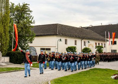 Die Bürgerkorpskapelle, die unter Stabführer Franz Lettner marschierte, gestaltete zu Ehren des Namensgebers der Florianijünger ein beeindruckendes Klangerlebnis. Unter der Leitung von Kapellmeisterstellvertreter Josef Haslinger erklangen „Kyrie“, „Gloria“ und „Sanctus“ aus der „Deutschen Messe“ von Franz Schubert, „The Rose“ von Bette Midler, „Beautiful“ von Gerald Servit, „You raise me up“ von Brendan Graham & Rolf Lovland, „Largo from Winter“ von Antonio Vivaldi sowie beim Totengedenken der “Deep Harmony“ Choral von Haendel Parker.