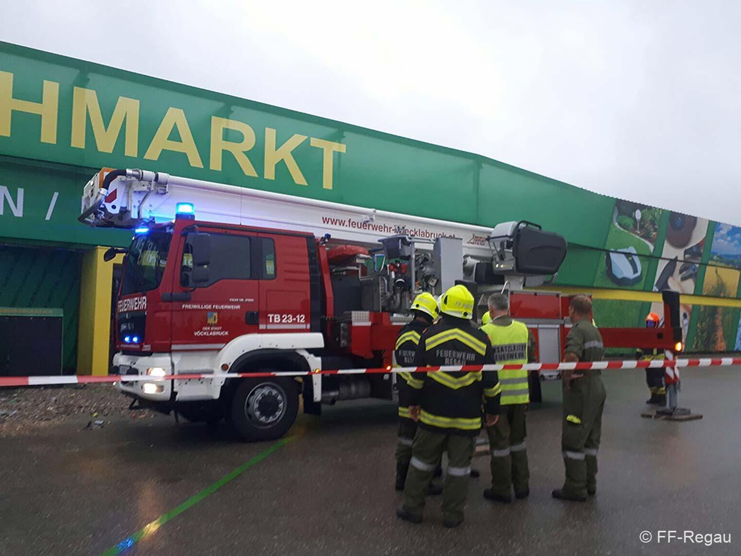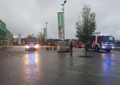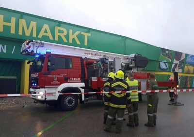 Zur Untersützung der Arbeiten wurde umgehend HUB Vöcklabruck nachalamiert, da eine Begehung zu gefährlich erschien. Es wurde im Zuge der weiteren Erkundungen festgestellt, dass wir keine weiteren Arbeiten durchführen konnten, sondern nur noch weiträumig absperren mussten.