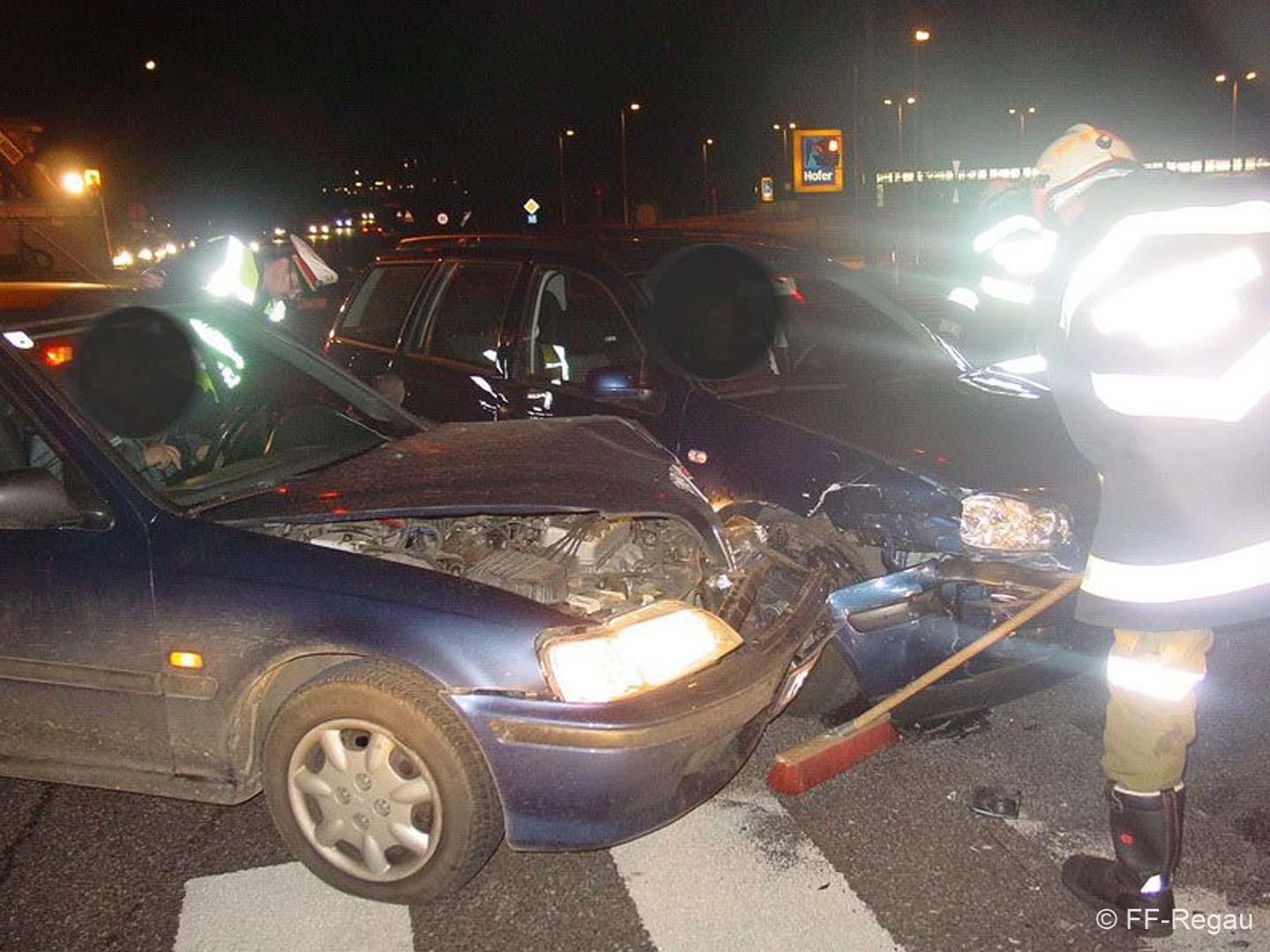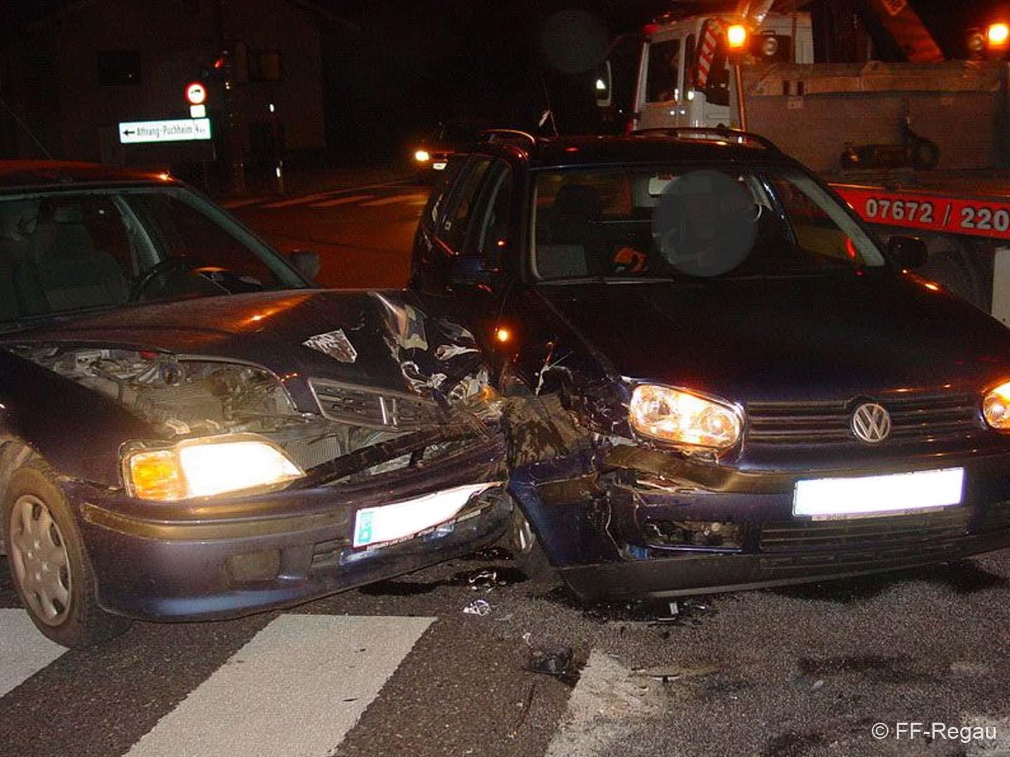 Zwei PKW’s waren kolliediert und in der Kreuzungsmitte zum stehen zu gekommen. Ausgelaufene Betriebsmittel wurden gebunden und die Straße von Splittern und Fahrzeugteilen gereinigt. Währenddessen wurde der Verkehr lokal umgeleitet. Im Einsatz war die FF-Regau mit 19Mann und 4 Fahrzeugen.