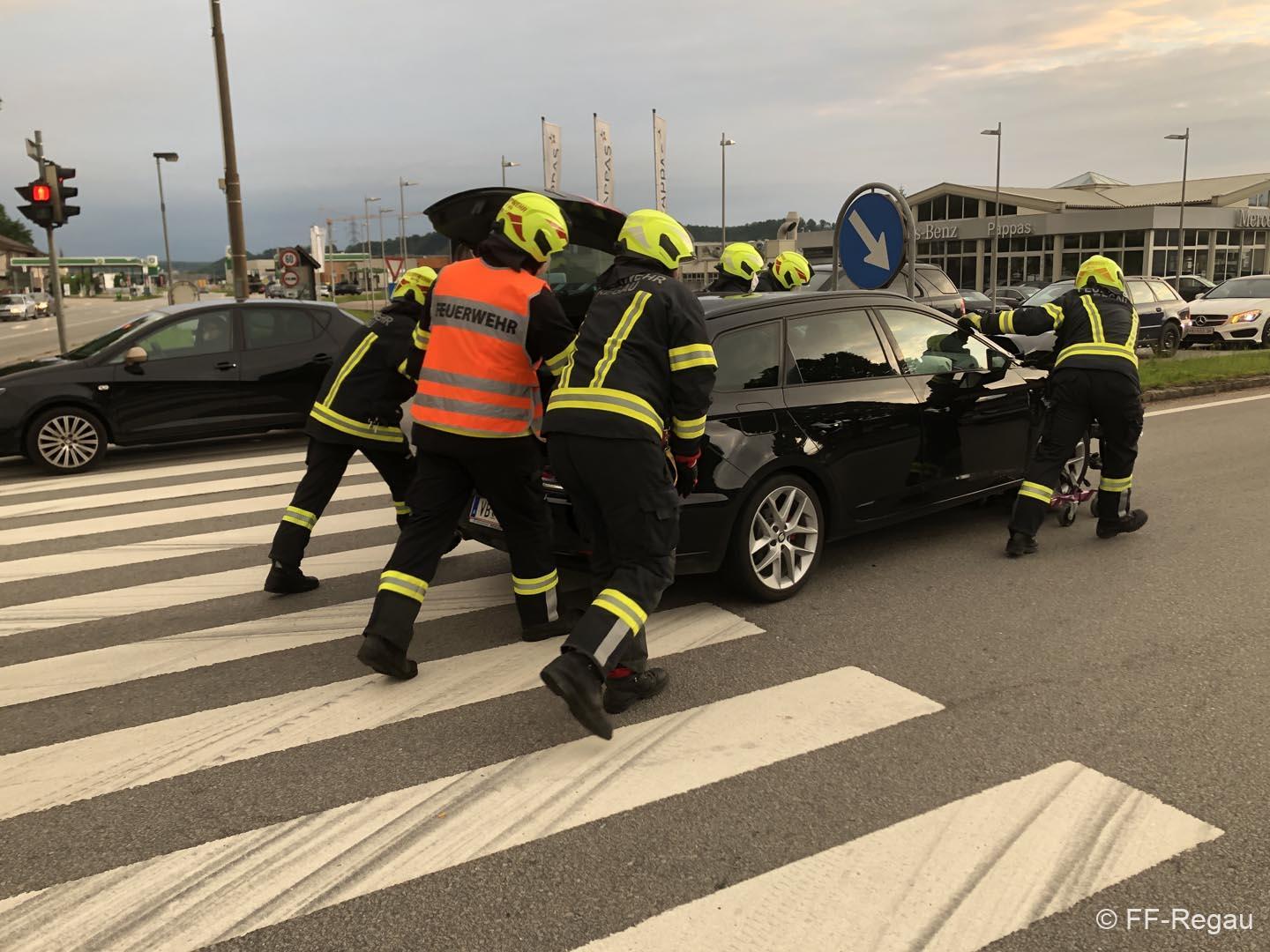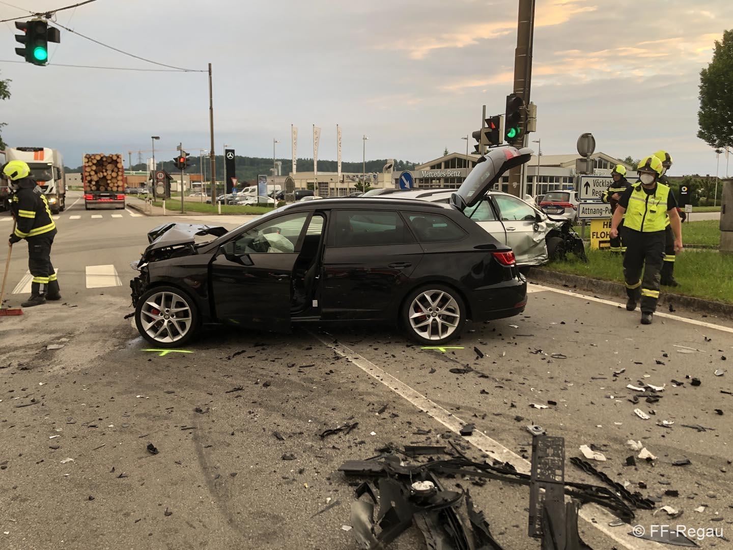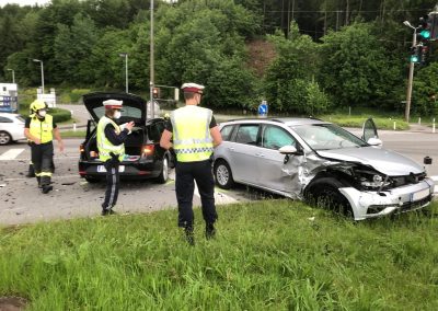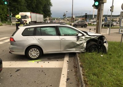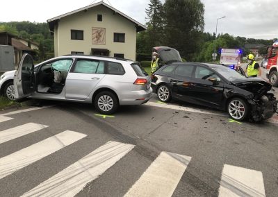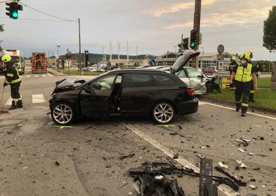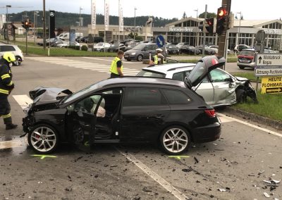 Wir haben die Fahrbahn von herumliegenden Teilen und ausgeflossenen Flüssigkeiten gereinigt und gesäubert (mittels Bindemittel und Bioversal) und haben die beiden PKW aus dem Kreuzungsbereich entfernt.