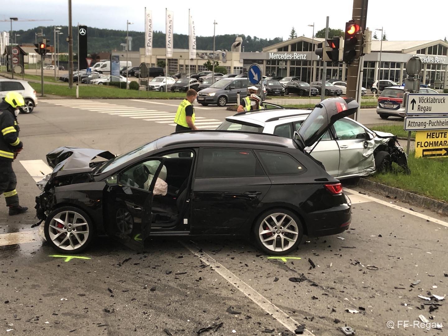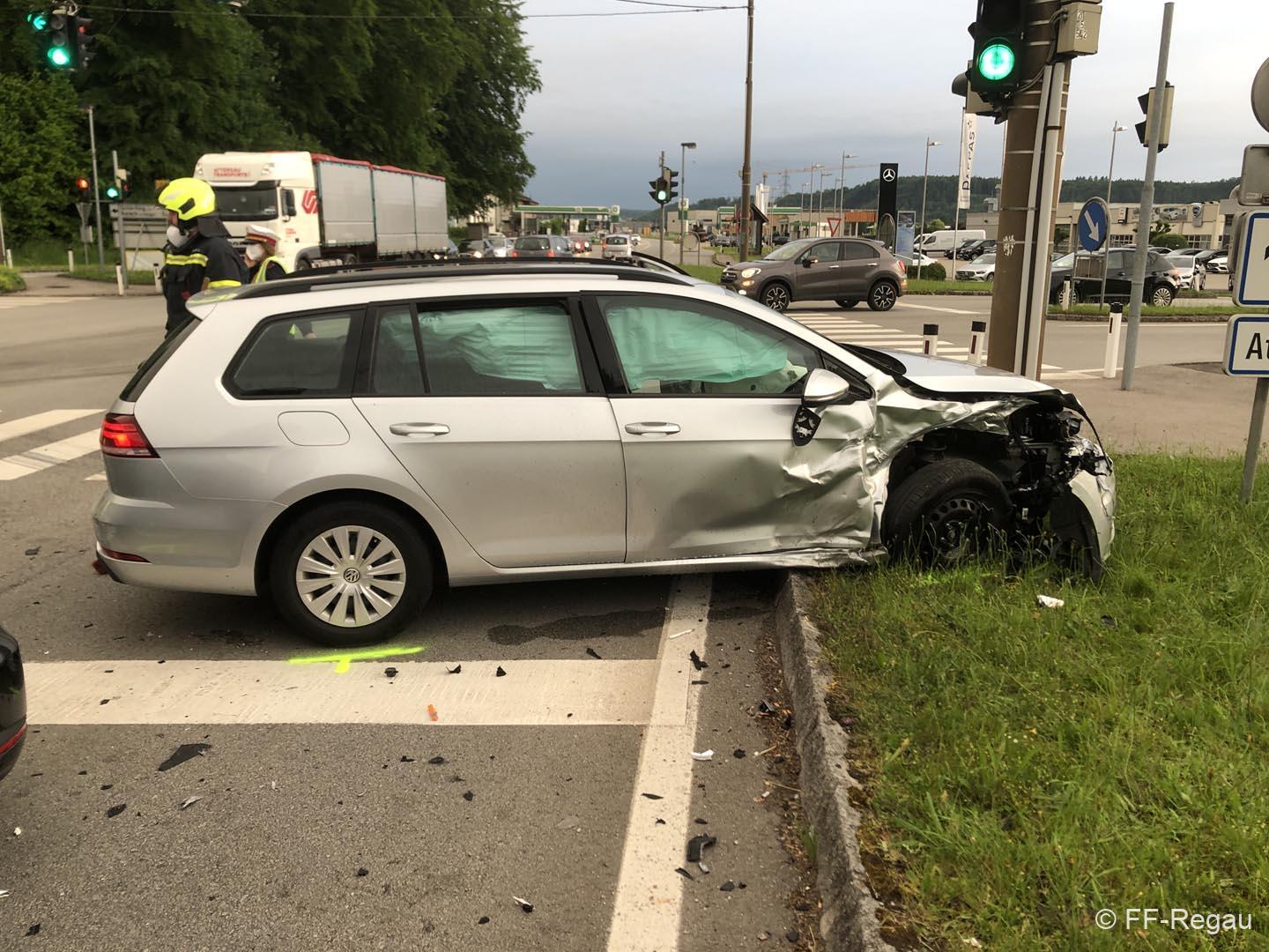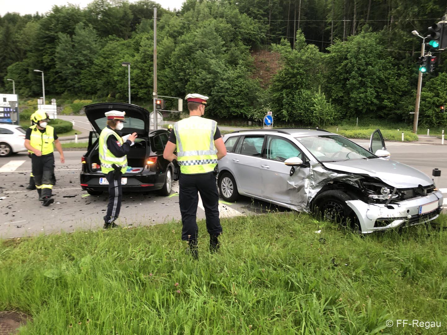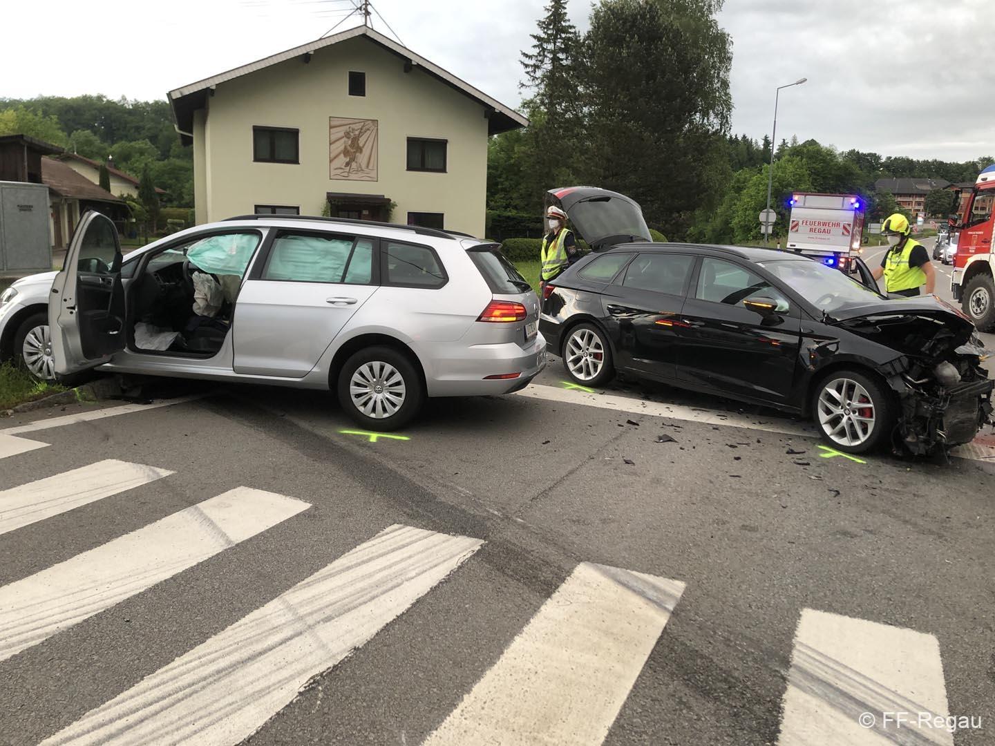 Um 05:18 Uhr wurden wir dazu alarmiert. Im Kreuzungsbereich waren zwei PKW zusammengestossen.