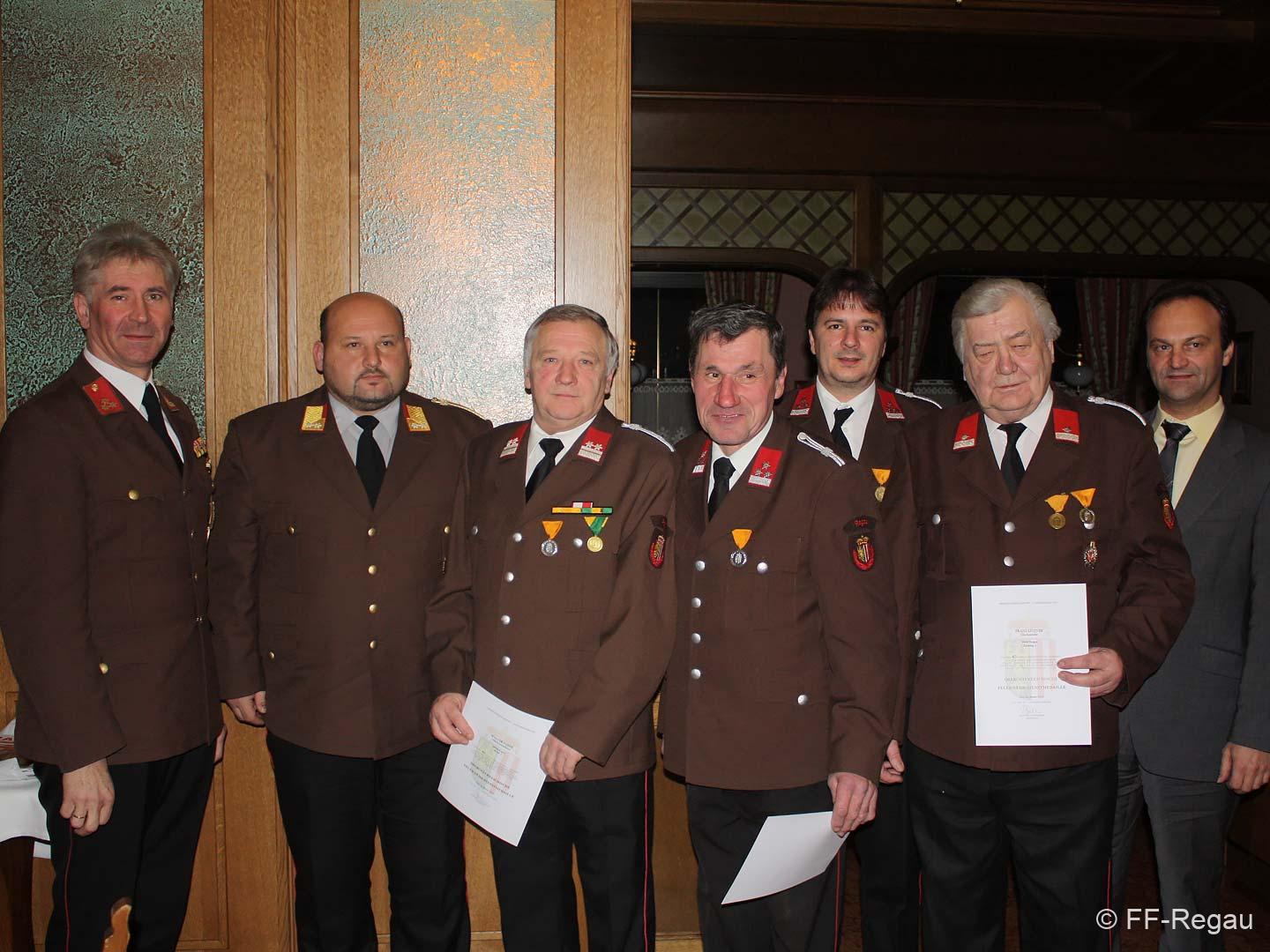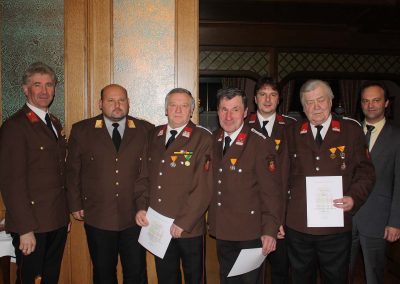 „Vor den Vorhang“ geholt wurden Feuerwehrmänner, die sich schon seit Jahrzehnten dem Dienst an der Gemeinschaft verschrieben haben: Thomas Hummer seit 25 Jahren; Franz Leitner, Fritz Mairhofer und Walter Stiedl seit 40 Jahren!
