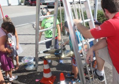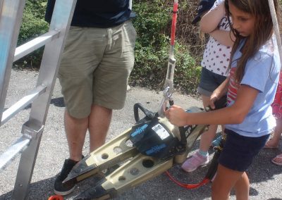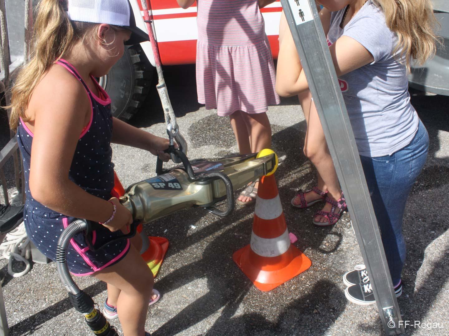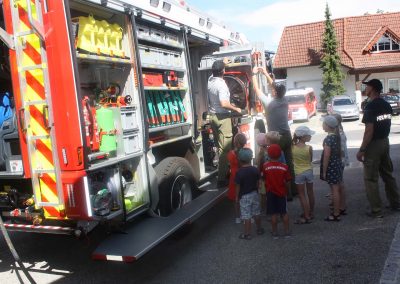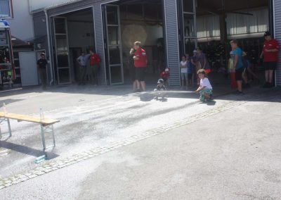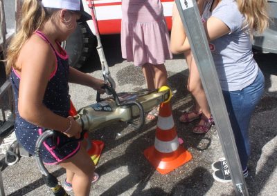 Das neue RLFA 2000 der FF Rutzenmoos war genauso ein Anziehungspunkt wie die Station mit dem Spreitzer. Hier galt es mit Wasser gefüllte Luftballons mit dem Spreizer von einem Ziel zu anderen bewegen, ohne dass der Luftballon platzt. Neben dem Zielspritzen gab es weiters noch die Möglichkeit mit dem HD-Rohr selber so richtig Feuerwehrmann zu spielen.