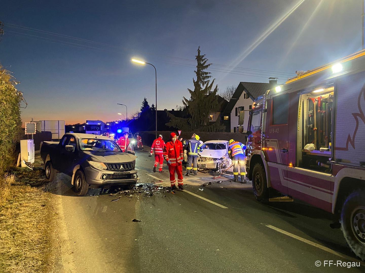 Frontalzusammenstoss auf Schörflinger Landesstraße, keine Personen eingeklemmt