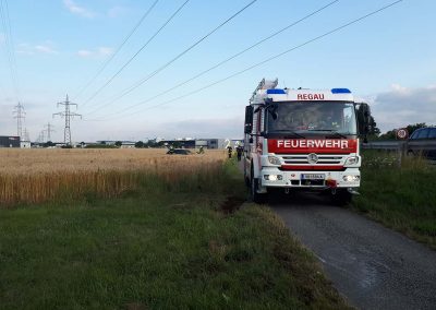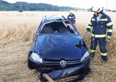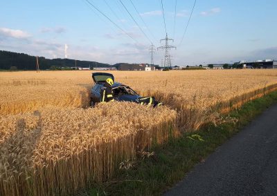 Das Unfallfahrzeug wurde dann von uns aus dem Feld gezogen und am angrenzenden Parkplatz abgestellt. Öl und sonstige Betriebsflüssigkeiten sind nicht ausgetreten. Somit war der Einsatz dann für unser wieder beendet.