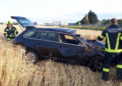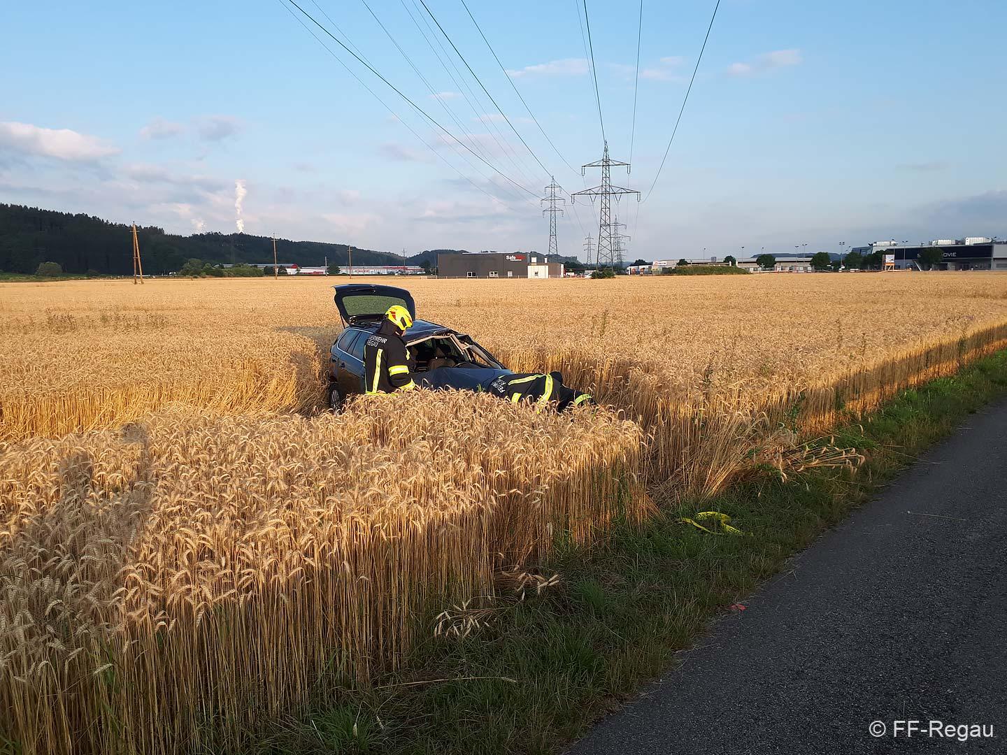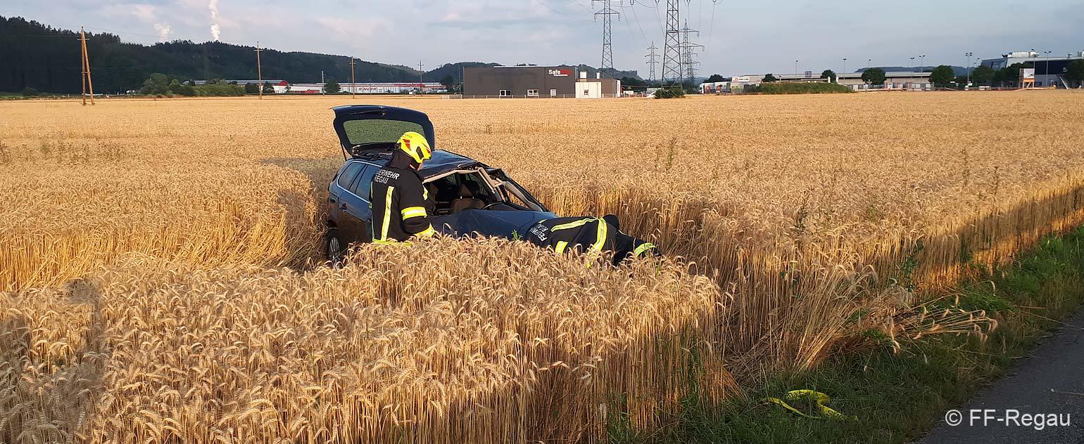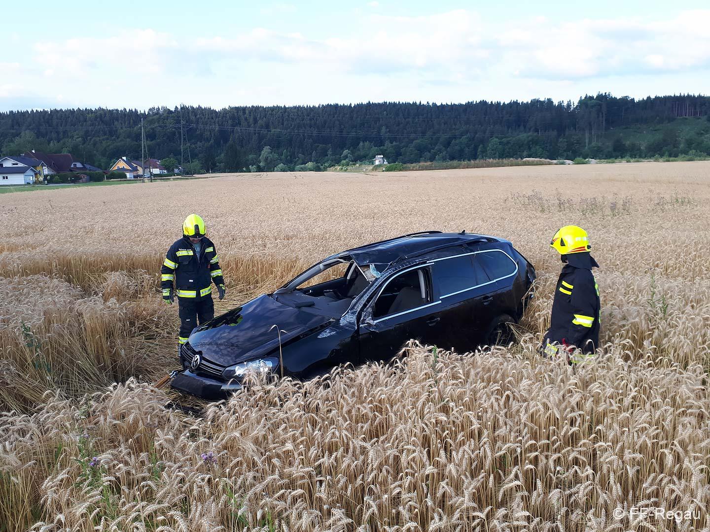 Zu einer Fahrzeugbergung wurden wir heute, 10.07., kurz nach 6 Uhr von der PI Vöcklabruck alarmiert. Ein Fahrzeuglenker kam mit seinem PKW aus bisher unbekannter Ursache auf der B 145 in Fahrtrichtung Vöcklabruck, auf die Gegenfahrbahn, fuhr in weiterer Folge auf eine Leitschiene auf, hob ab und dadurch katapultierte es den PKW in das angrenzende Feld. Zuvor hat das Fahrzeug zum ersten Mal am zwischen Bundesstraße und Feld verlaufenden Geh- und Radweg aufgeschlagen, dann in weiterer Folge hat es den PKW noch zwei Mal überschlagen, bis er wieder auf den Rädern im Feld zu stehen kam. Glücklicherweise waren keine Fußgänger und Radfahrer am Gehweg unterwegs.