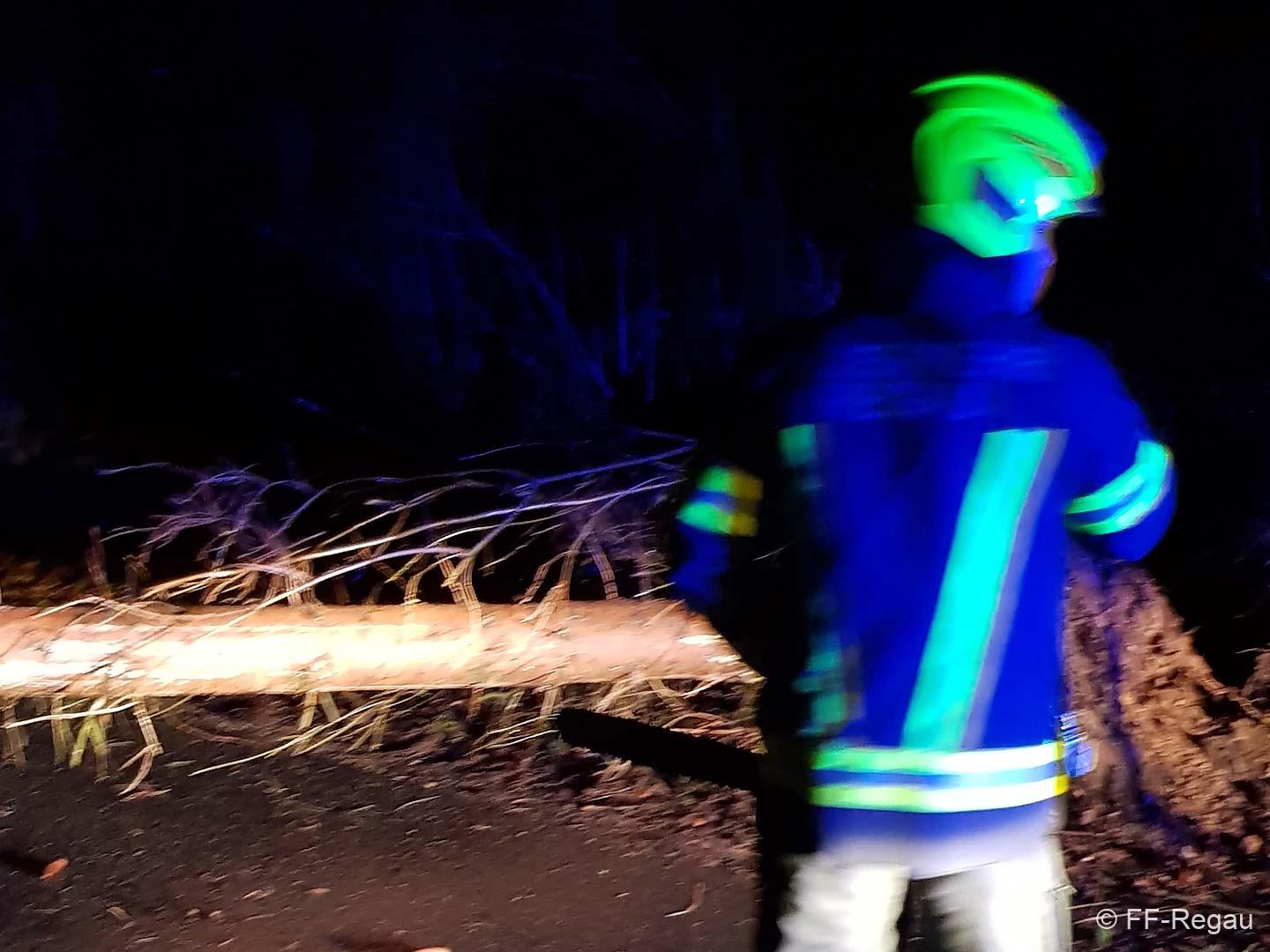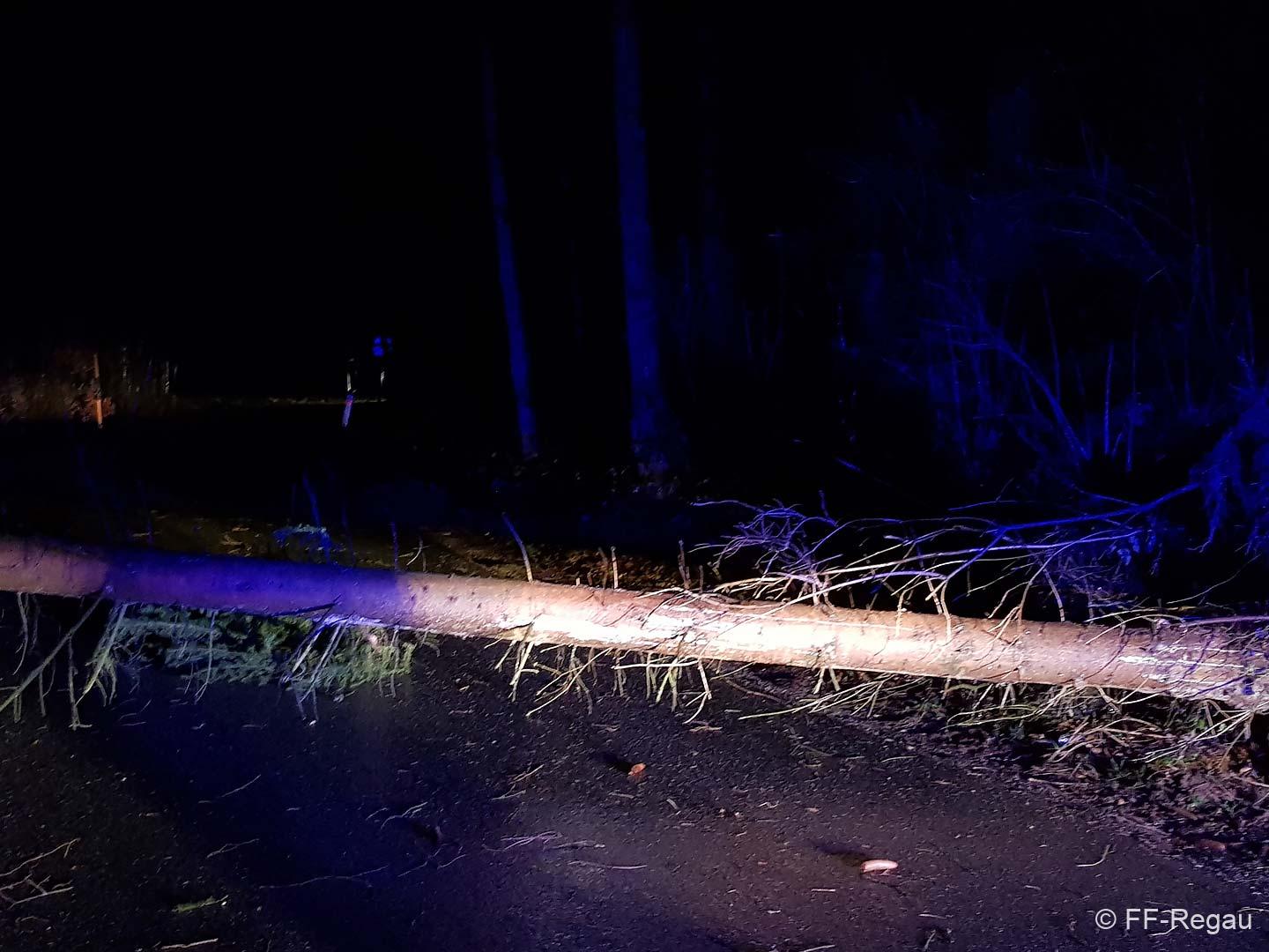 Kurz vor 6 Uhr wurden wir am 11.02. zu umgestürzten Bäumen in Oberregau und in Preising alarmiert.