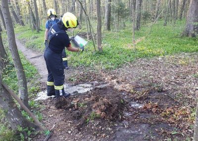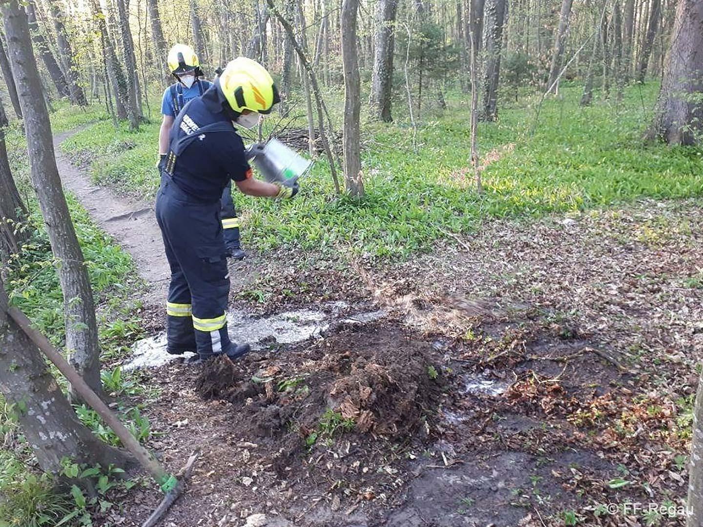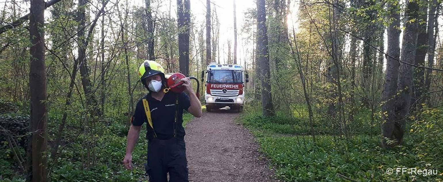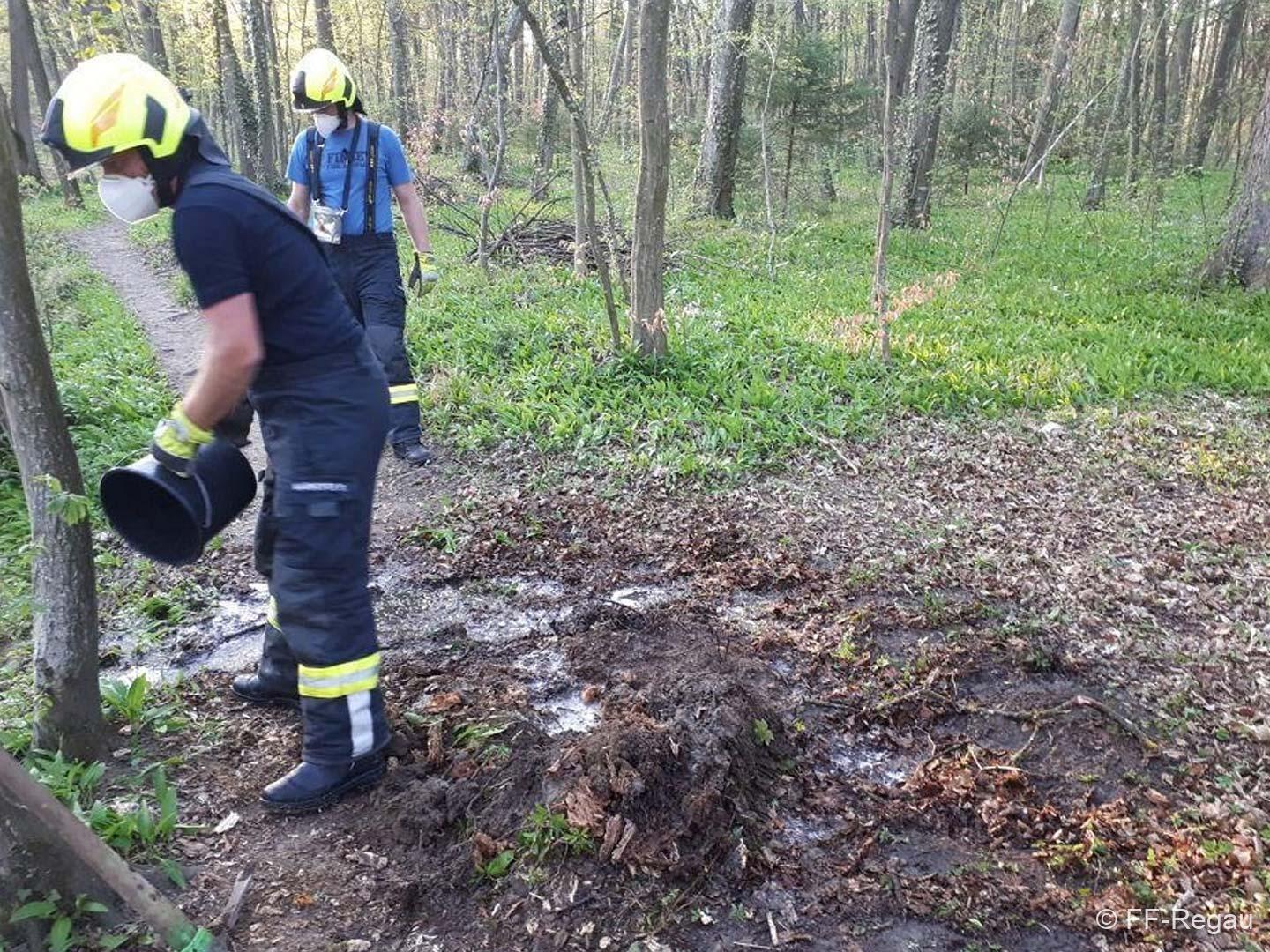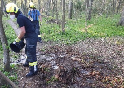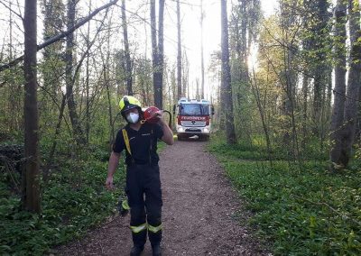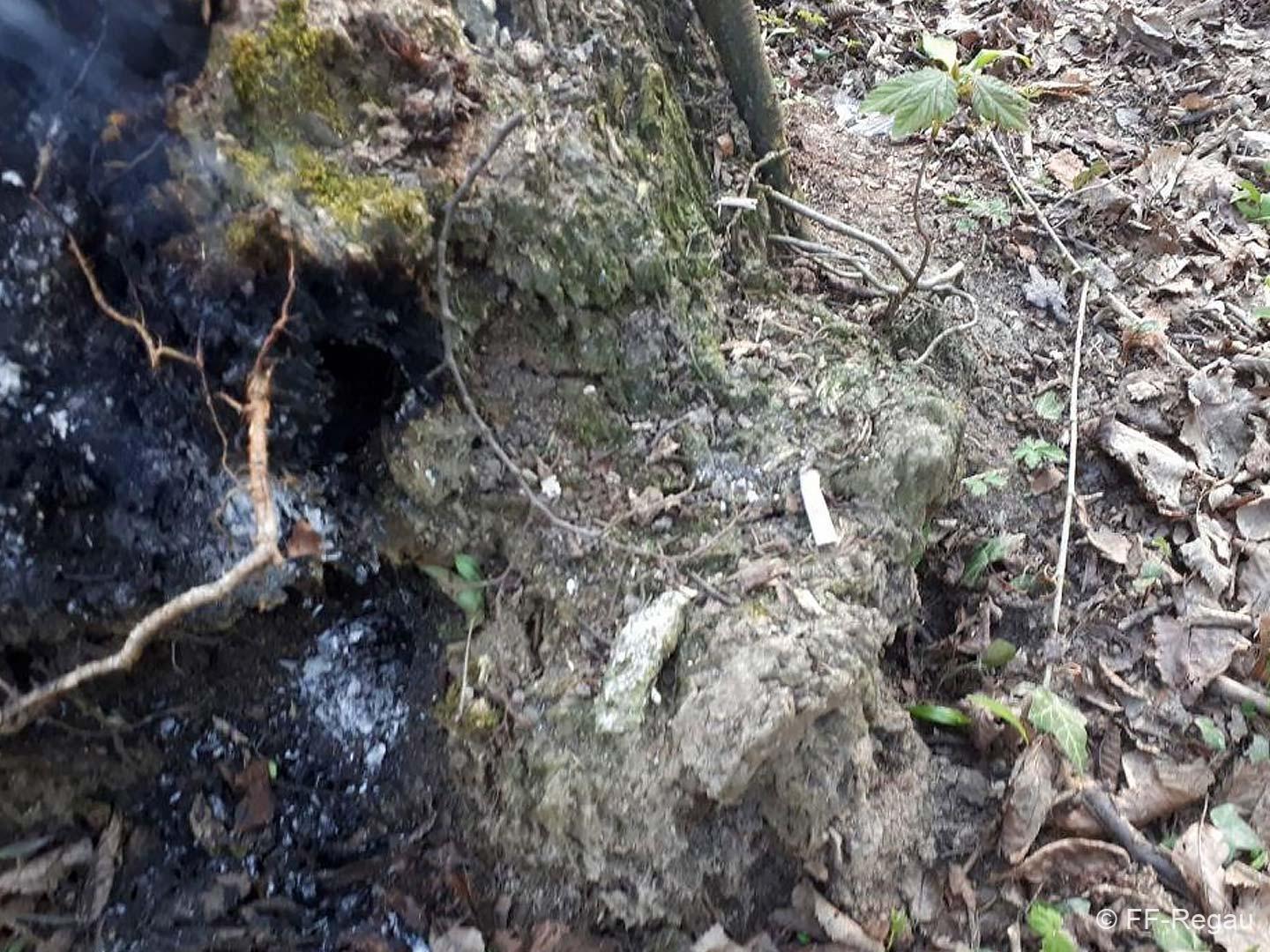 Wir fanden dann einen glosenden Baumstumpf mitten im Wald des Augebietes vor. Mittels Wasser (aus Löscheimern) und Feuerlöscher gab es dann schnell Brand aus!