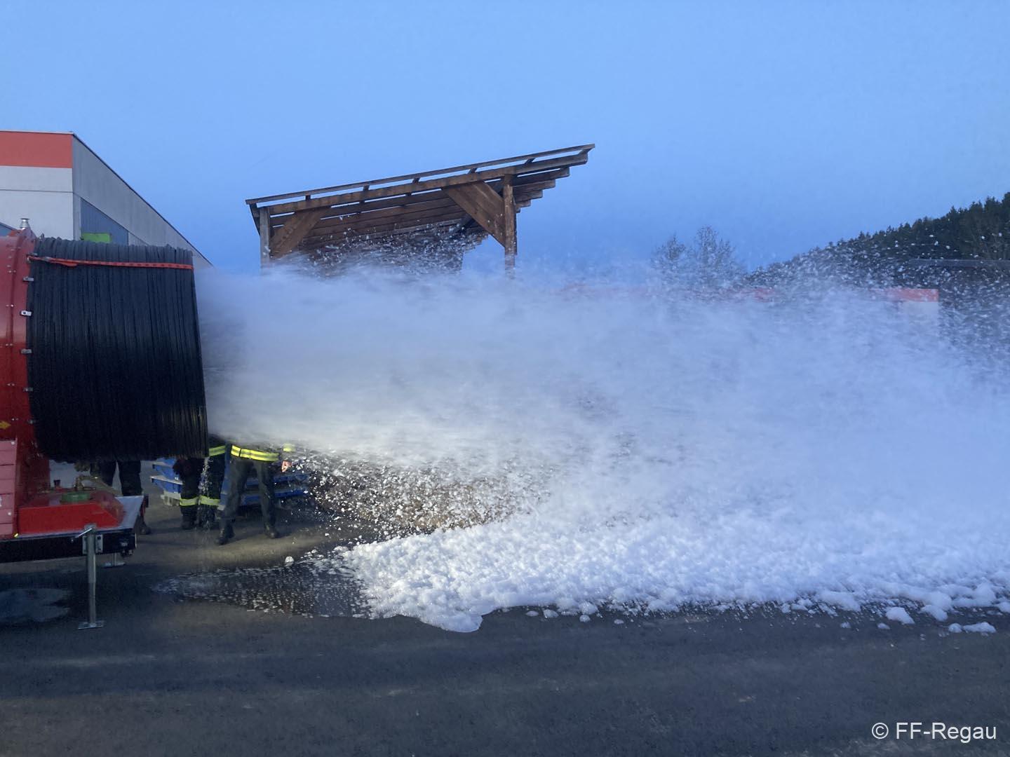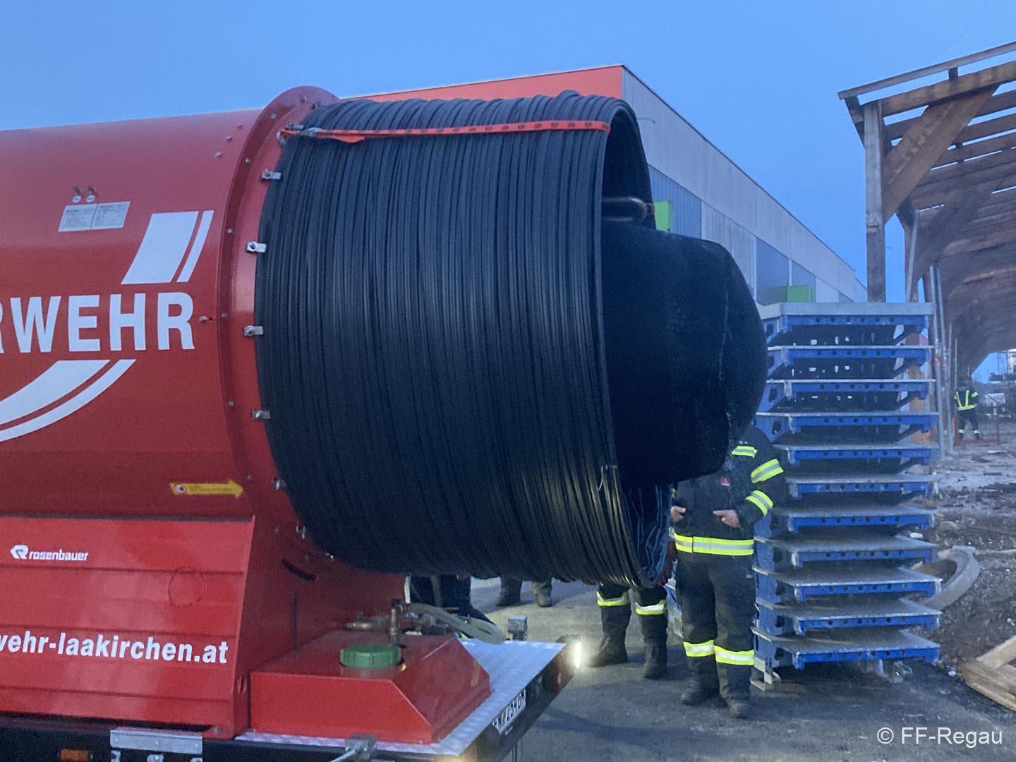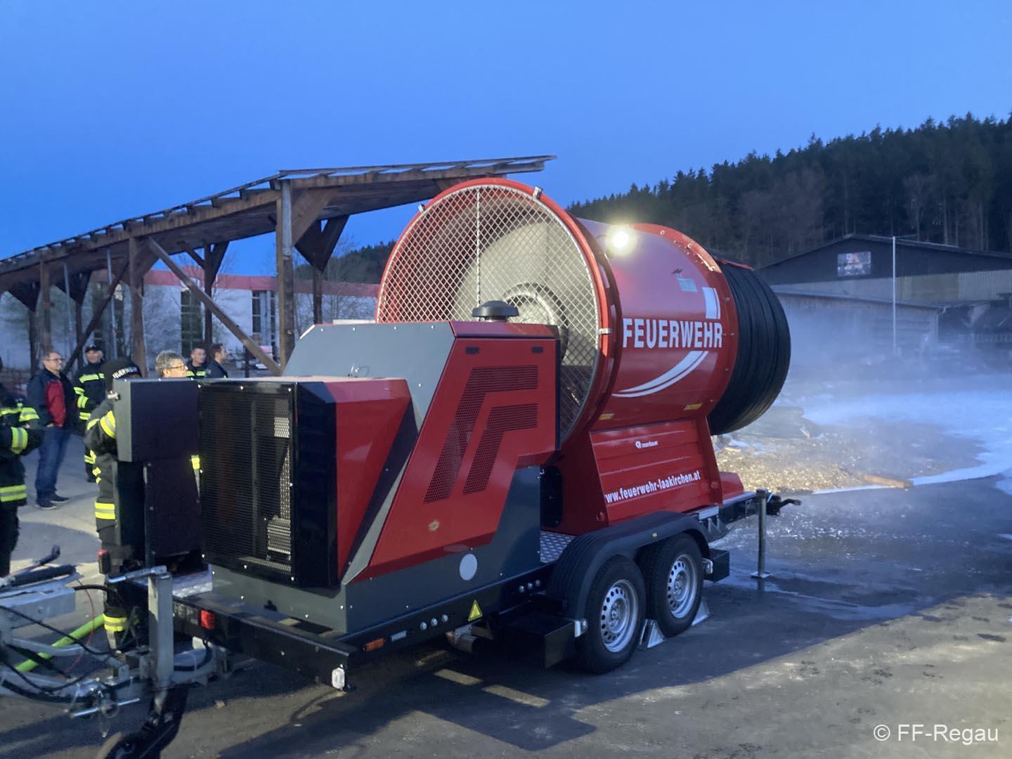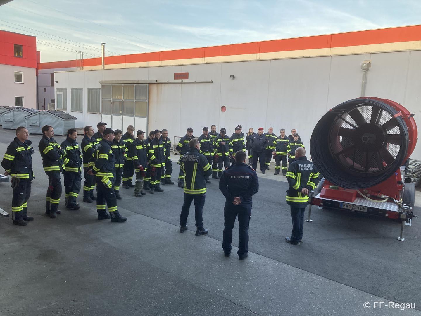 Eindrucksvolle Übung mit dem Großlüfter der FF Laakirchen bei der Fa. Ringer!