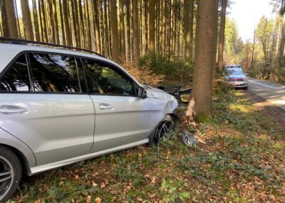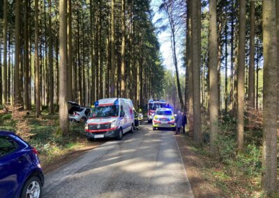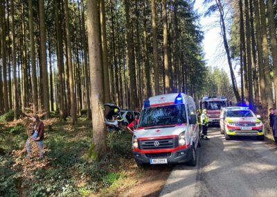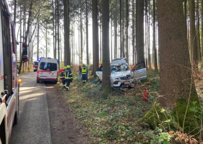 Aus bisher bekannter Ursache ist ein Fahrzeuglenker auf der Gemeindestraße in Schönberg von der Fahrbahn abgekommen und gegen einen Baum geprallt. Entgegen der Alarmierung war der Lenker bei unserem Eintreffen nicht eingeklemmt und ein Einsatz des Bergegerätes nicht erforderlich. Der bereits anwesende Notarzt und das Rote Kreuz wurden von uns bei den Bergearbeiten unterstützt. Der verletzte Unfalllenker wurde dann in das Salzkammergutklinikum Vöcklabruck eingeliefert.