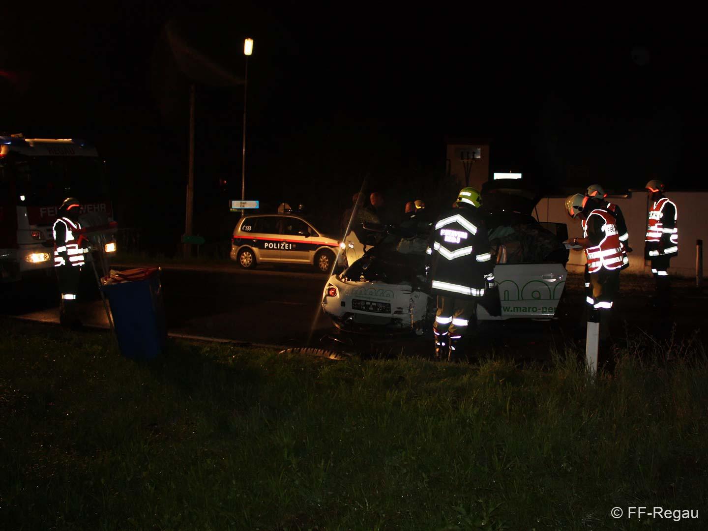 Kurz nach 3 Uhr Früh wurden wir am 12.08.2017 zu Aufräumarbeiten nach einem Verkehrsunfall auf der Schörflinger Landesstraße, bei der Kreuzung nach Pürstling, alarmiert. Ein PKW ist aus ungeklärter Ursache von der Fahrbahn abgekommen, gegen eine Gartenmauer geprallt und anschließend quer zur Fahrbahn zum Stehen gekommen. Wir führten die Aufräumarbeiten durch und reinigten die Fahrbahn von herumliegenden Teilen. Die Besonderheit bei diesem Einsatz war, dass es sich bei dem Unfallfahrzeug um ein Elektroauto gehandelt hat. Die vorliegenden Informationen zur Bergung dieser Fahrzeuge sind zur Zeit noch sehr dürftig. Glücklicherweise wurde bei diesem Unfall niemand verletzt, so dass der Druck einer Menschenrettung nicht gegeben war und unter Mitwirkung des Lenkers die aufgetretenen technischen Fragen geklärt werden konnten. Zumindest über die Spannungsfreiheit des Fahrzeuges!