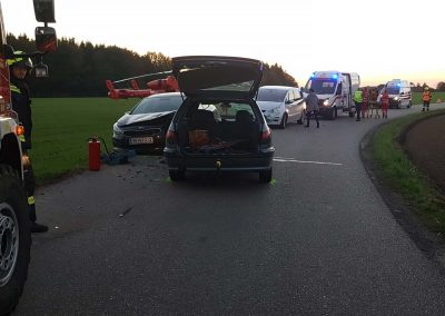 Auf Anforderung der Polizei wurden wir und die FF Rutzenmoos von der Landeswarnzentrale heute kurz nach 18 Uhr zu einem Verkehrsunfall mit eingeklemmter Person in die Ortschaft Roith alarmiert. Zwei PKW waren in einer Kurve in Roith aus bisher unbekannter Ursache beinahe frontal zusammengestoßen. Als wir am Einsatzort ankamen, stellte sich heraus, dass von den beteiligten Personen niemand eingeklemmt war. Alle Unfallbeteiligten waren bereits aus ihren Fahrzeugen.