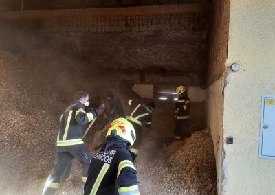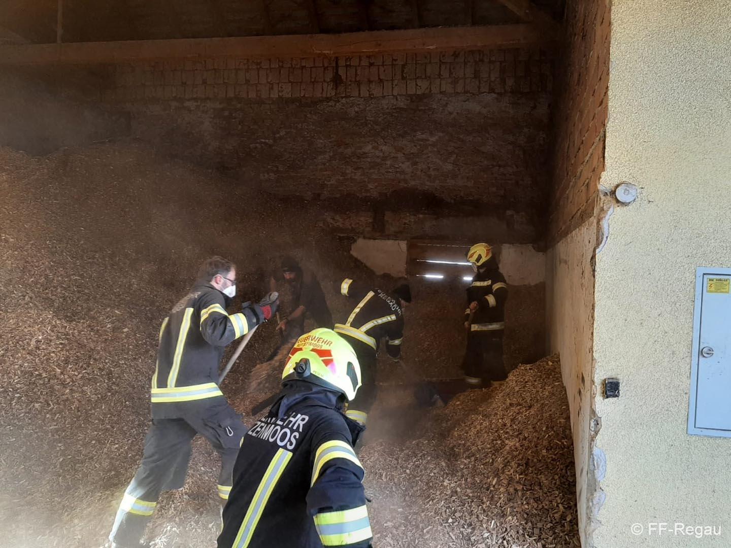Heute gegen 11.00 Uhr wurden die Feuerwehren Regau und Rutzenmoos telefonisch vom Eigentümer zu einem Brand bei einer Hackschnitzelheizung alarmiert.
