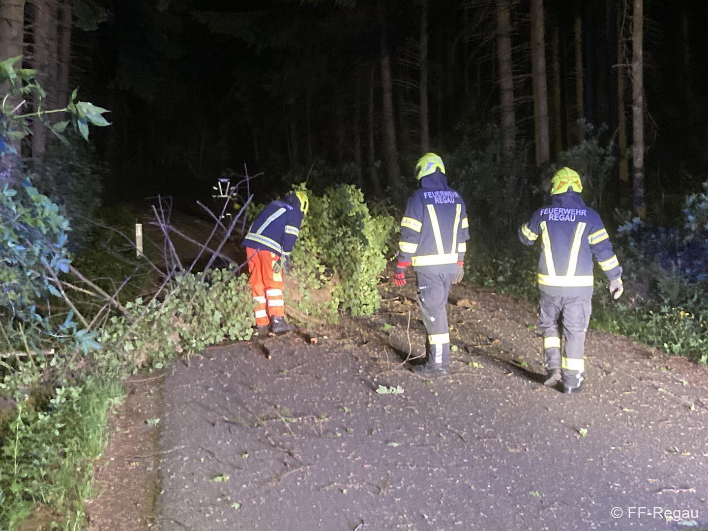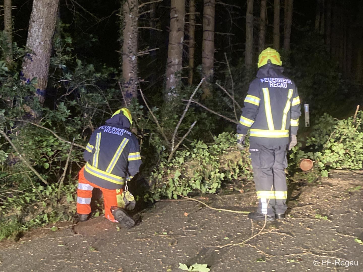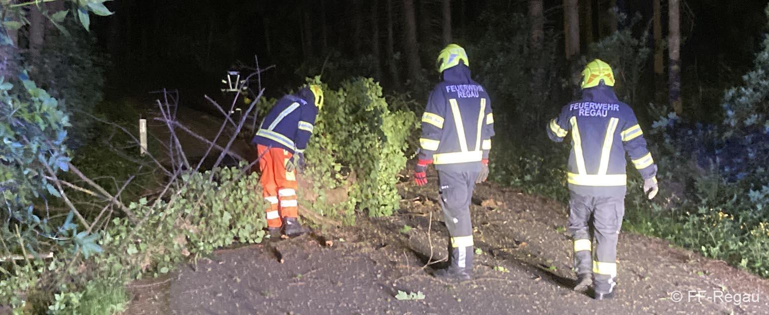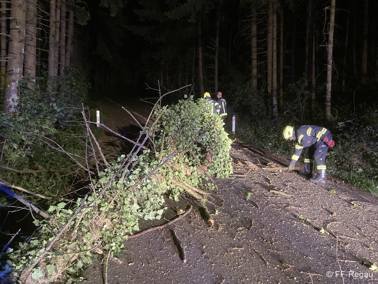 Am Oberregauerberg war ein Baum umgestürzt und blockierte die gesamte Straße.
