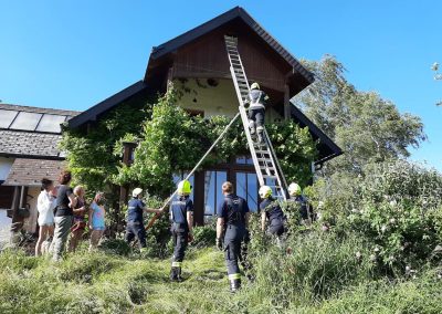 Dort haben wir unsere Schiebeleiter aufgestellt und danach die Kücken, die allesamt wohlauf waren, wieder zurück in ihr Nest gebracht.