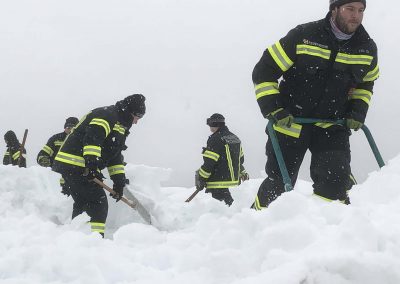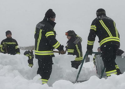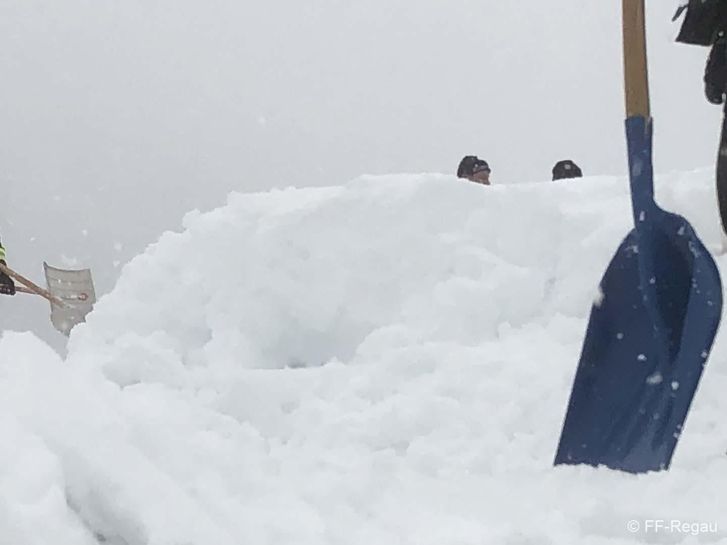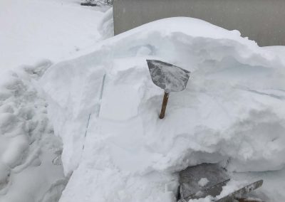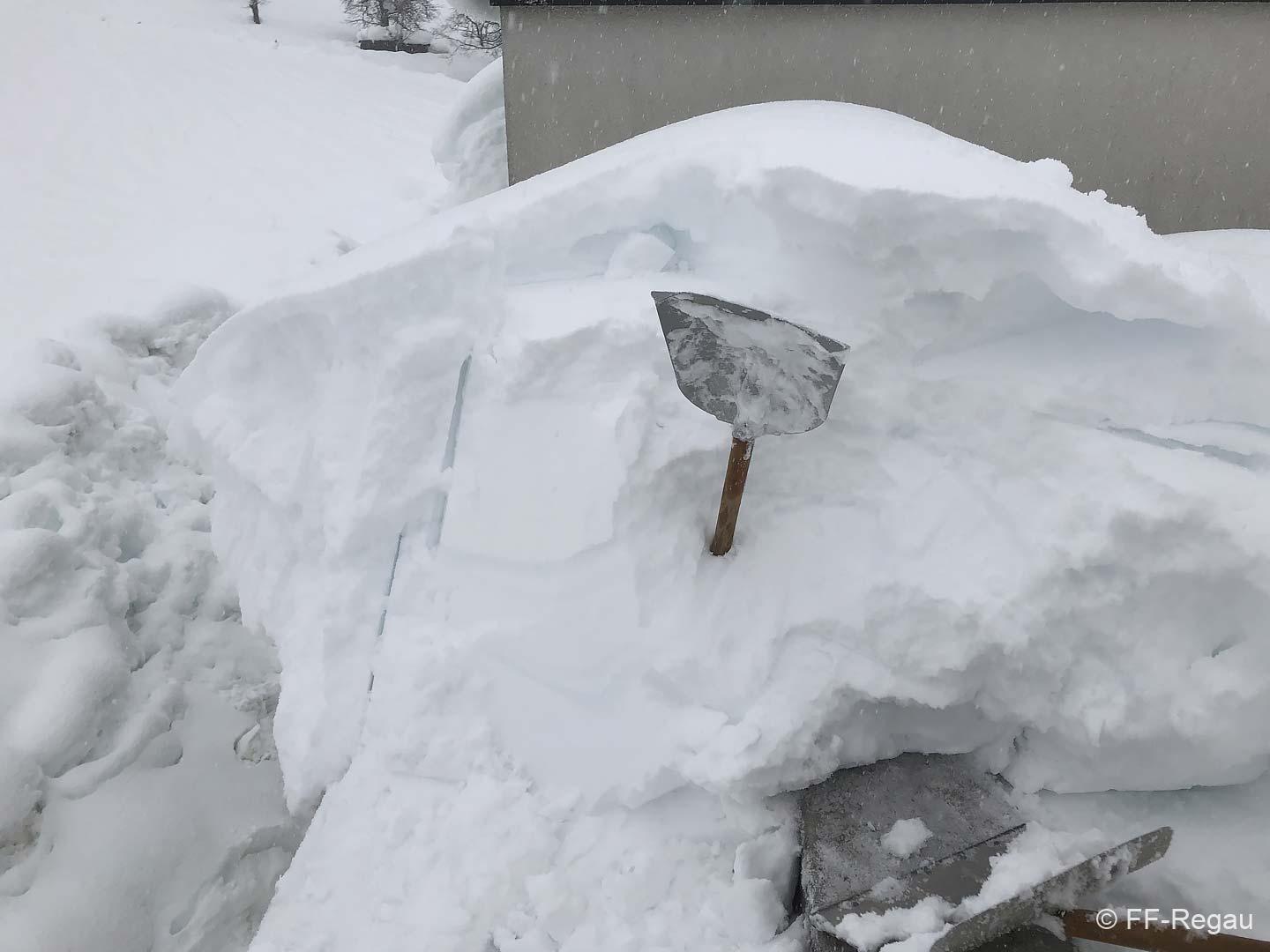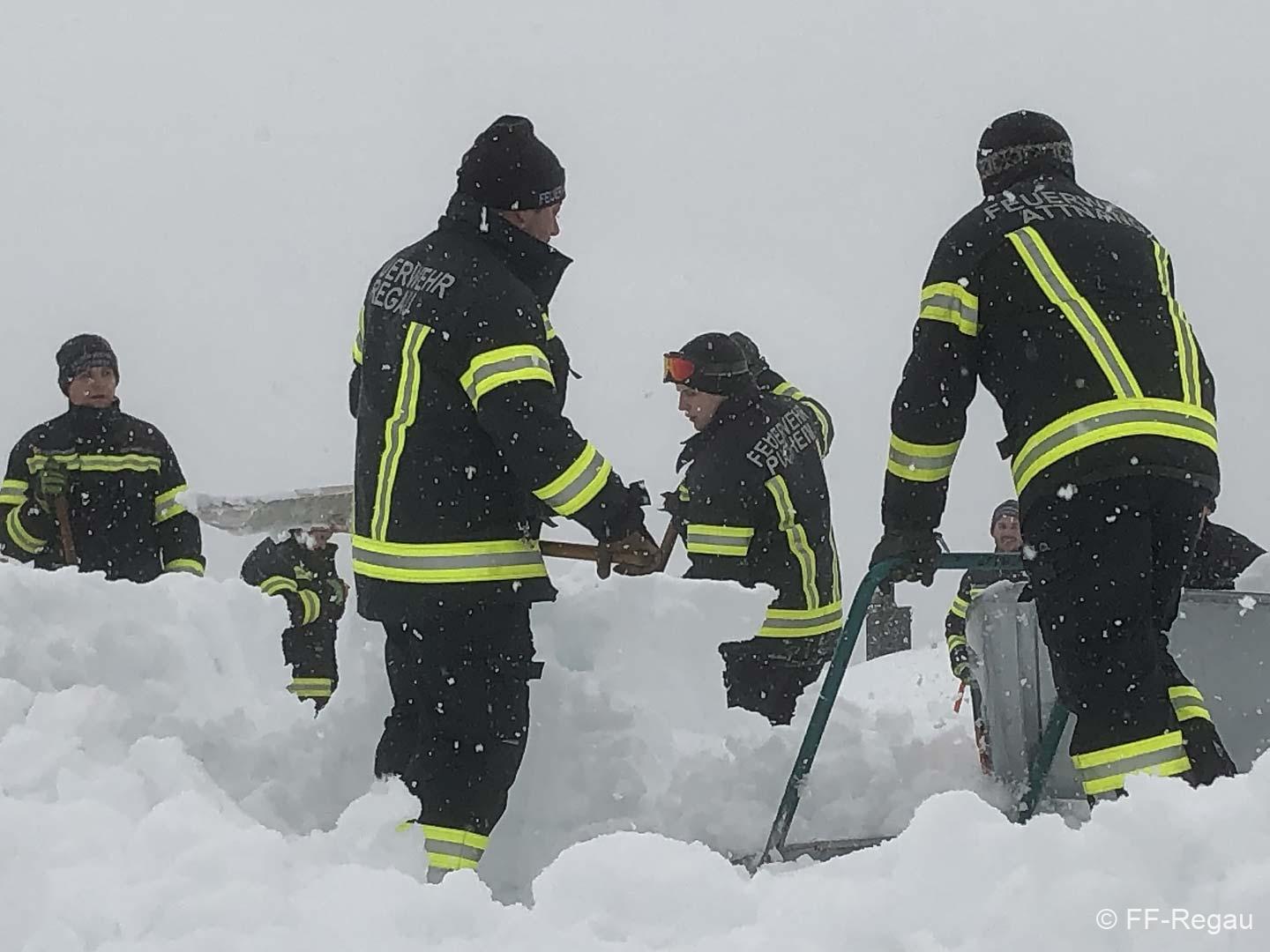 Gemeinsam mit den Kameraden der FF-Attnang und FF-Puchheim mussten wir den ADEG-Markt räumen (den anderen Feuerwehren wurden weitere gefährdete Objekte zugeteilt). Gemeinsam wurde geschaufelt, geschaufelt und geschaufelt. Teilweise war am Dach Schnee in Höhe von gut 1,5 Meter. Der Schnee war nur oben pulvrig, unten dann fest und kompakt. Deshalb wurden mit Baumsägen Blöcke herausgeschnitten und diese dann mittels Schneehexen weggebracht.