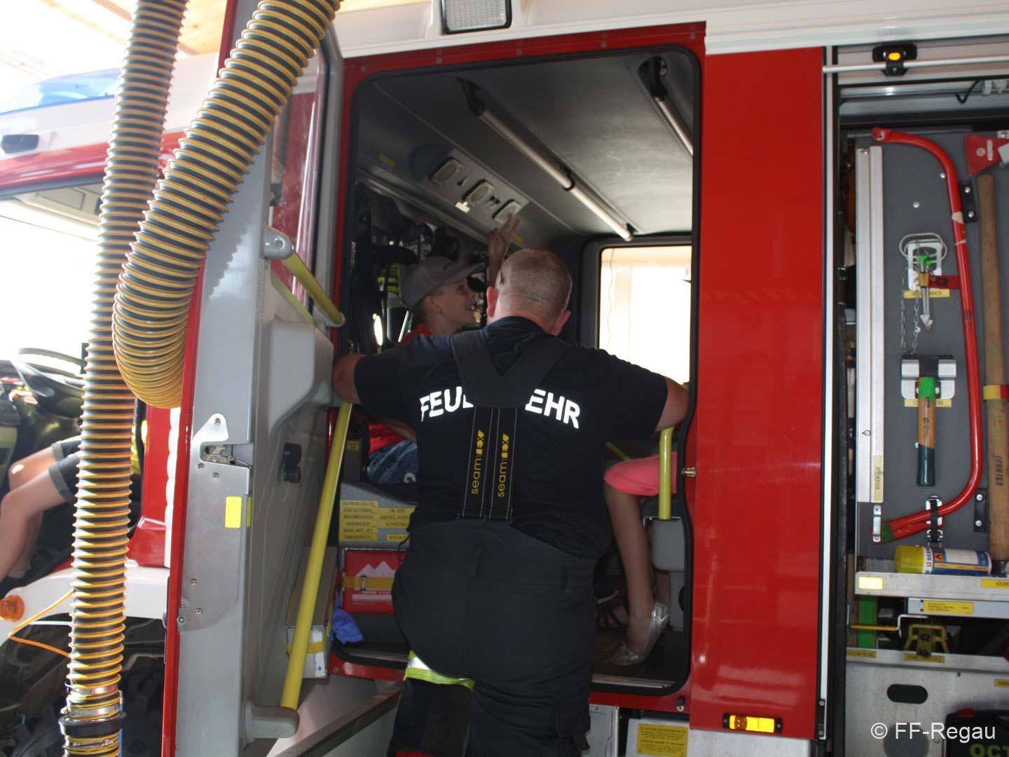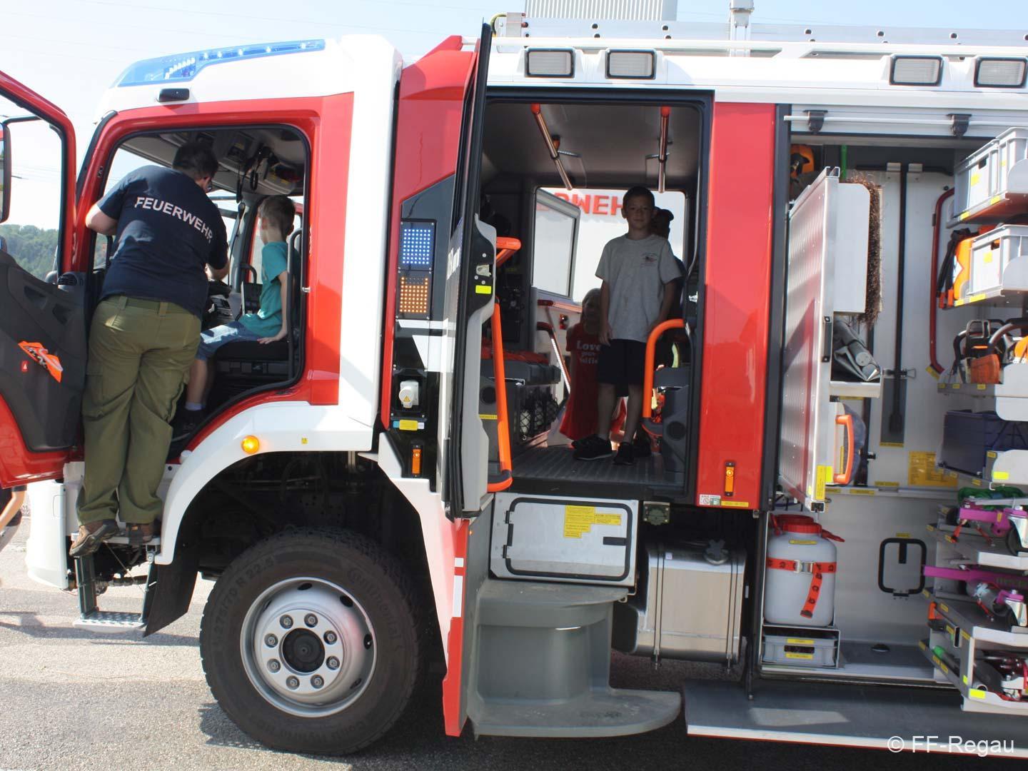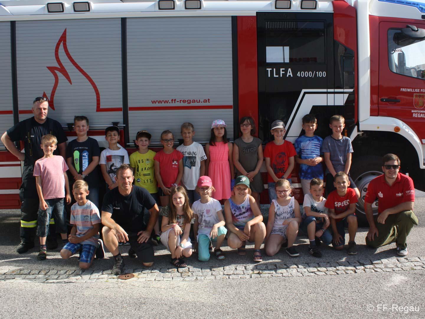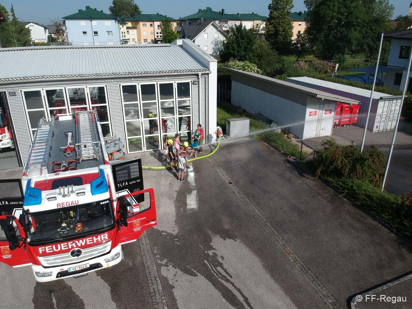 Die 3, Klassen der Volksschule Regau haben uns am 14. Juni besucht. Kommandant Christoph Staudinger freute sich, die Kinder im Feuerwehrhaus begrüßen zu dürfen, nachdem vor gut zwei Monaten ja eine Abordnung der FF bei den Schülern in der Schule war. Alles rund um das Feuerwehrwesen begeisterte die Kinder. Zu Beginn gab’s ein Video über die richtige Alarmierung und dann wurden die Gerätschaften gezeigt. Groß war dann der Eifer natürlich als die Kinder selber Hand anlegten und das Strahlrohr bedienen durften. Dazu musste ein „echter“ Feuerwehrhelm getragen werden, eh klar. Natürlich war die abschließende Fahrt mit dem Feuerwehrauto wieder der absolute Höhepunkt..