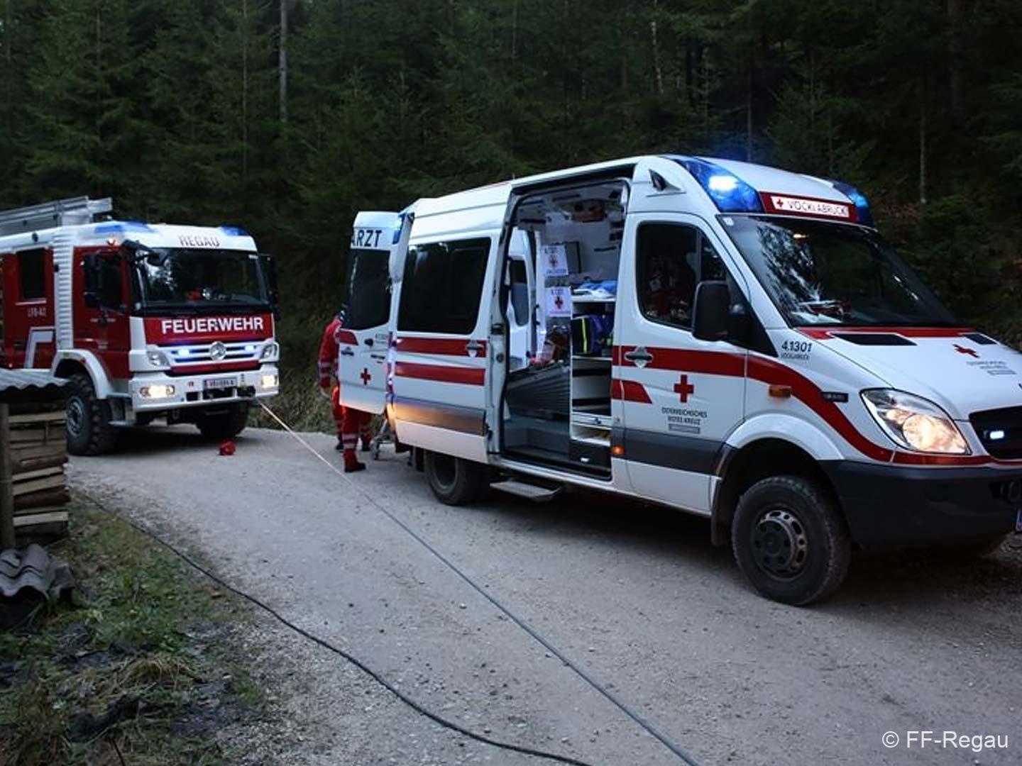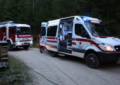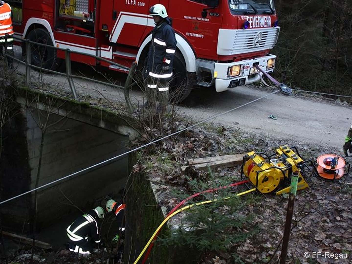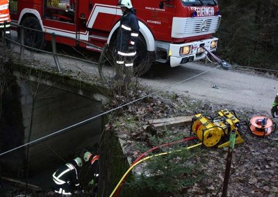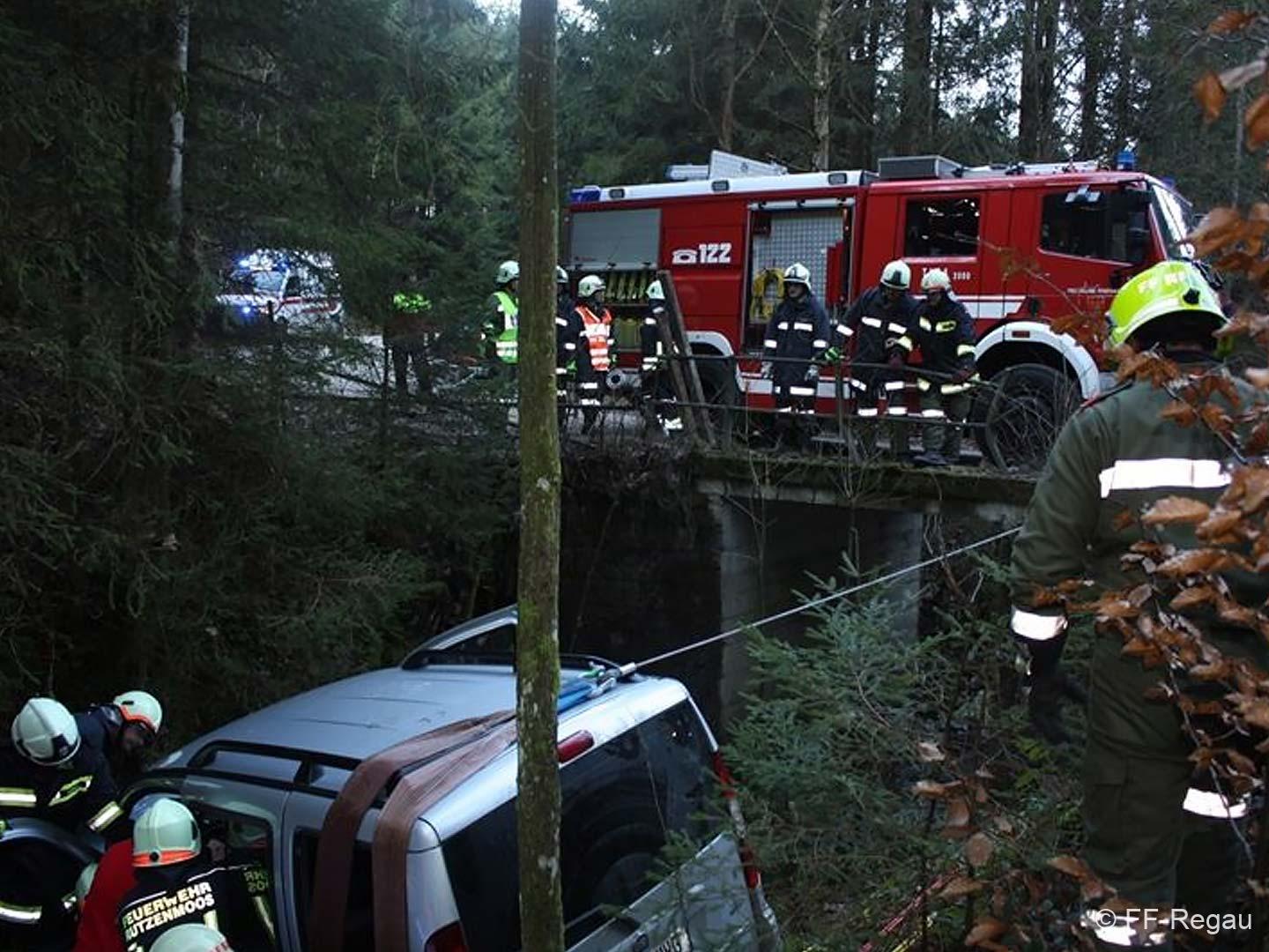 Ein PKW war auf dem Güterweg Kohlstatt Richtung Lehner im Wald unterwegs. Aus ungeklärter Ursache kam das Fahrzeug von der Fahrbahn ab und stürzte über eine Böschung. Der Unfalllenker befand sich noch im Fahrzeug und wurde vom bereits anwesenden Notarzt erstversorgt. Während wir das hydraulische Rettungsgerät in Stellung brachten wurde das Unfallfahrzeug mittels Seilwinde gesichert. Gemeinsam mit dem Notarzt wurde der verletzte Lenker geborgen. Der ebenfalls verletzte Beifahrer der im Schock den Unfallort verlassen hatte wurde nach seinem Auffinden vom Roten Kreuz versorgt. Die Bergungsarbeiten des Unfallfahrzeuges wurden von der FF-Rutzenmoos durchgeführt.
