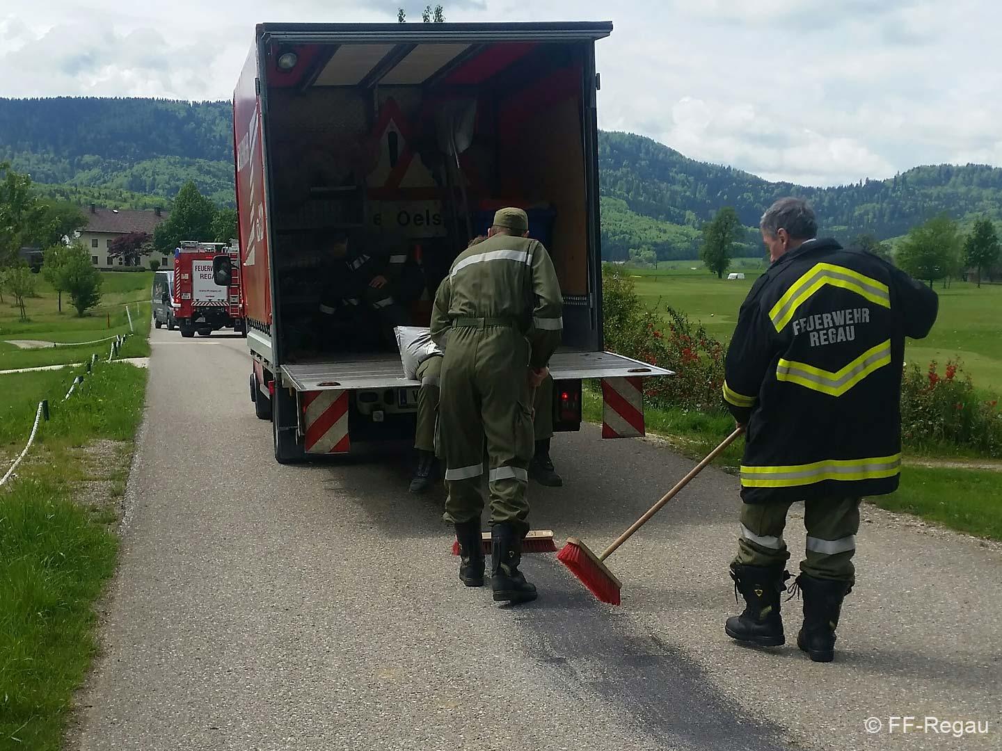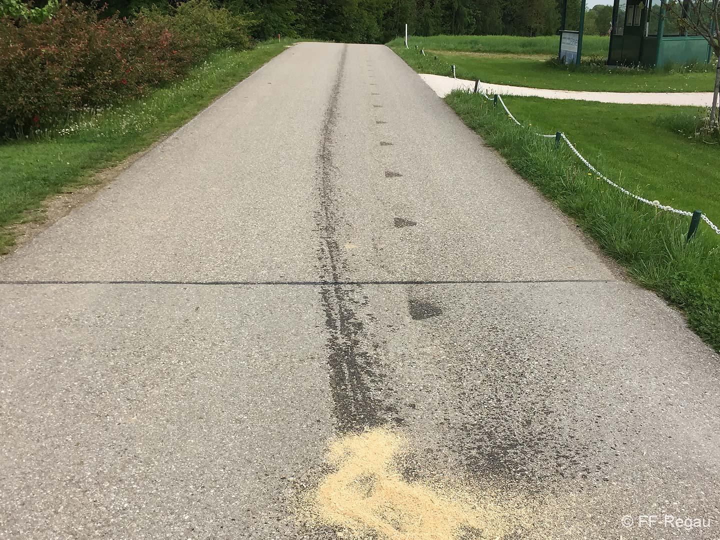 Eine Ölspur in der Ortschaft Riedl war der Grund für diesen Einsatz.