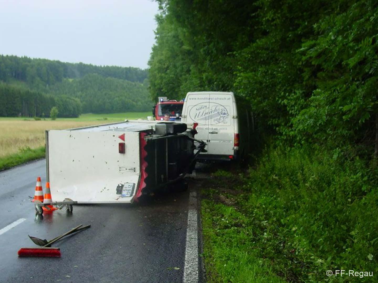 Auf der Schörflinger Landesstraße, kurz nach der Abzweigung Zaissing Richtung Schörfling, sind ein Kleinbus samt Anhänger und ein PKW aus ungeklärter Ursache zusammengestoßen. Der PKW ist in eine angrenzende Wiese geschlittert. Der Anhänger des Busses ist umgestürzt und blockierte somit einen Fahrstreifen. Zum Aufstellen des Anhängers wurde die FF-Rutzenmoos mit ihrem Rüstfahrzeug angefordert. Nachdem der Anhänger aufgestellt und von der Straße gebracht wurde, wurde der Bus von einem Abschleppdienst geborgen. Anschließend reinigten wir noch die Fahrbahn, welche dann für den Verkehr wieder freigegeben werden konnte. Verletzt wurde bei diesem Unfall niemand.