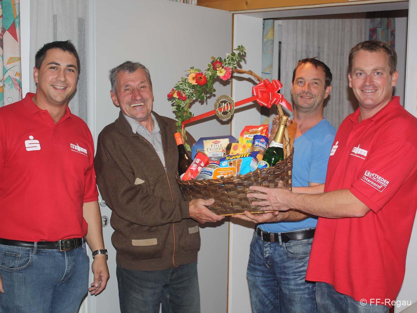 Dies war für ihn Anlass, uns zu einer Geburtstagsfeier im Feuerwehrhaus einzuladen. Nach der wöchentlichen Übung würdigte Kommandant Christoph Staudinger die Verdienste von Fritz und die vielen aufgebrachten Stunden für die Feuerwehr. Fritz war immer da, wenn er gebraucht wurde und schaut auch heute immer noch nach dem Rechten. Er erhielt einen Geschenkskorb zu seinem runden Geburtstag und danach wurde mit dem Jubilar noch gemütlich in großer Runde gefeiert.