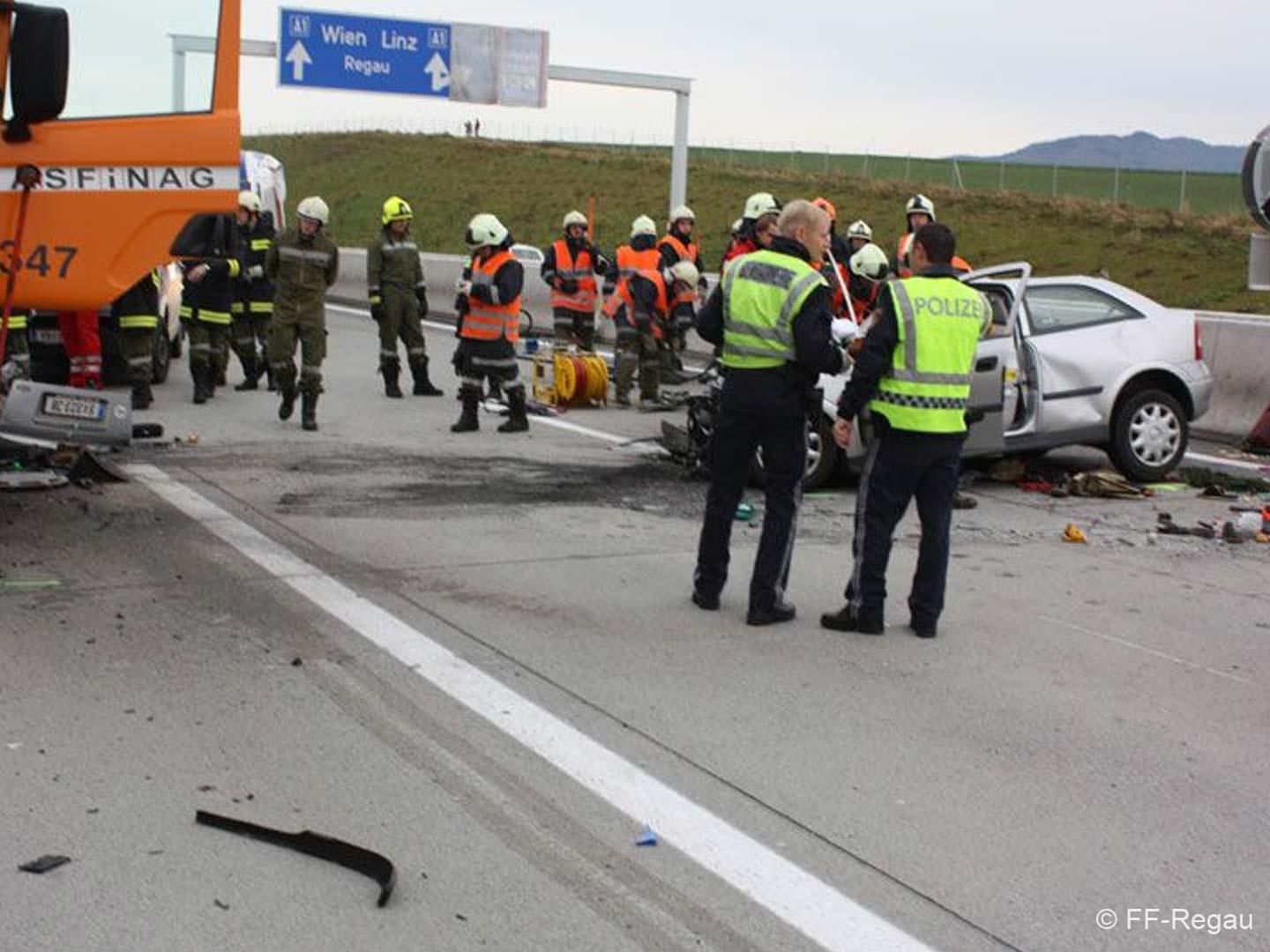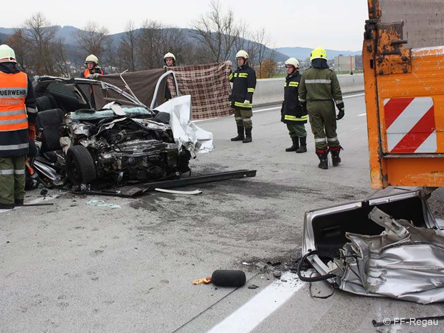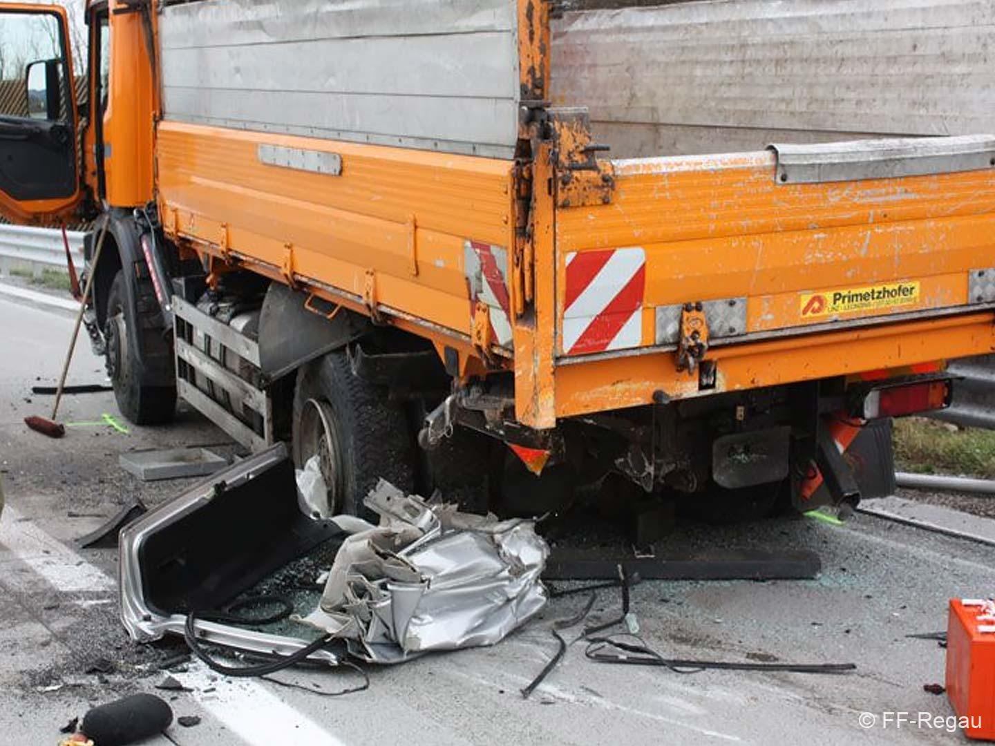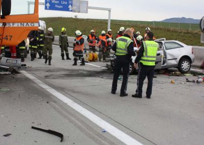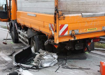 Nur wenige hunderte Meter vor der Ausfahrt Schörfling prallte ein mit vier Personen besetzter PKW ungebremst gegen ein Straßenerhaltungsfahrzeug der Autobahnmeisterei.