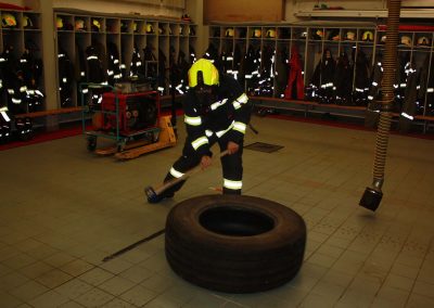 Die Fitness der Atemschutzträger wird anhand der vorgegebenen Belastungsübungen überprüft.