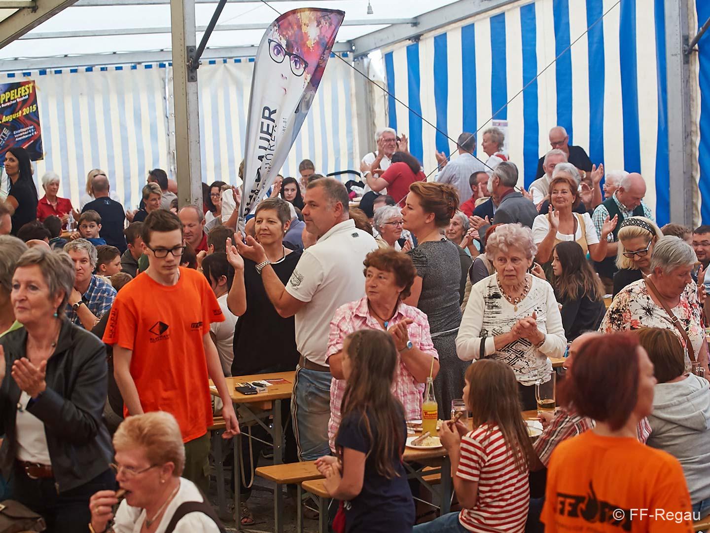 Ein Rekord-Kirtag! Die Freiwillige Feuerwehr Regau hatte eingeladen zum Jubiläums-Kirtagfrühschoppen, und alle kamen! Glücklicher Weise hatten wir ein extra großes Zelt vorbereitet, und das füllte sich auch bis auf den letzten Platz.